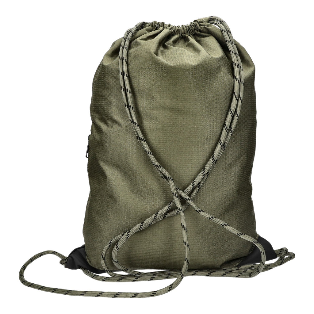 Gefertigt aus grünem Textil mit weißem Logo.
