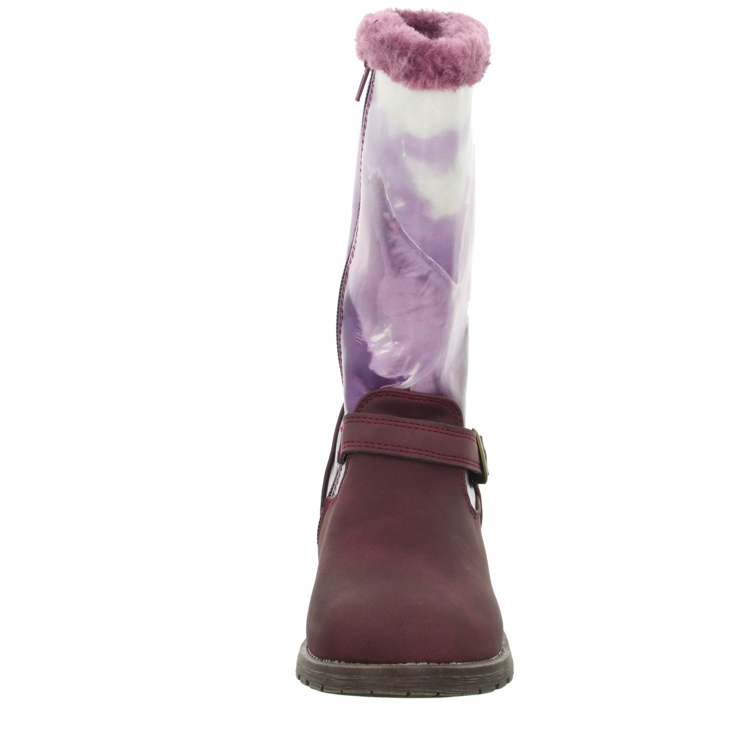 Das Futter besteht aus kurzem weichem Kunstfell und die Decksohle aus Textil.