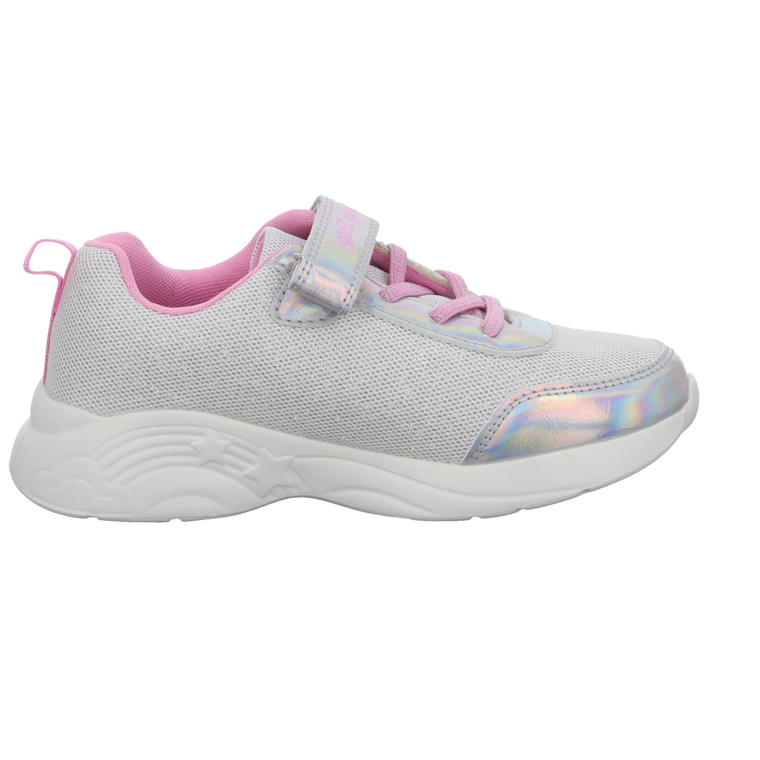 Gefertigt aus hochwertigen hell grauem textilem Obermaterial mit Glitzer.