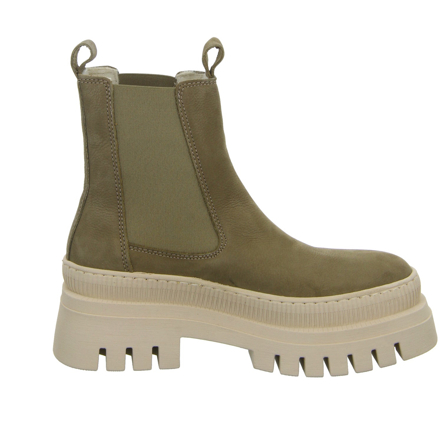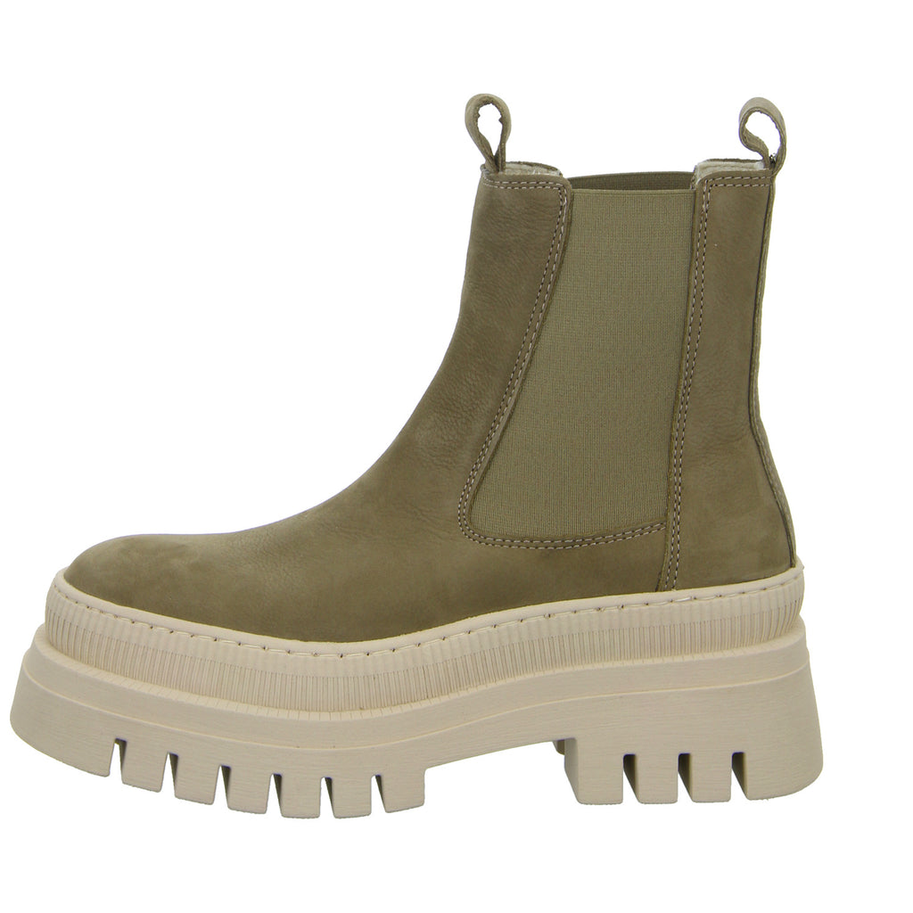 Der Schuh ist ausgestattet mit einer hohen Synthetik Laufsohle.