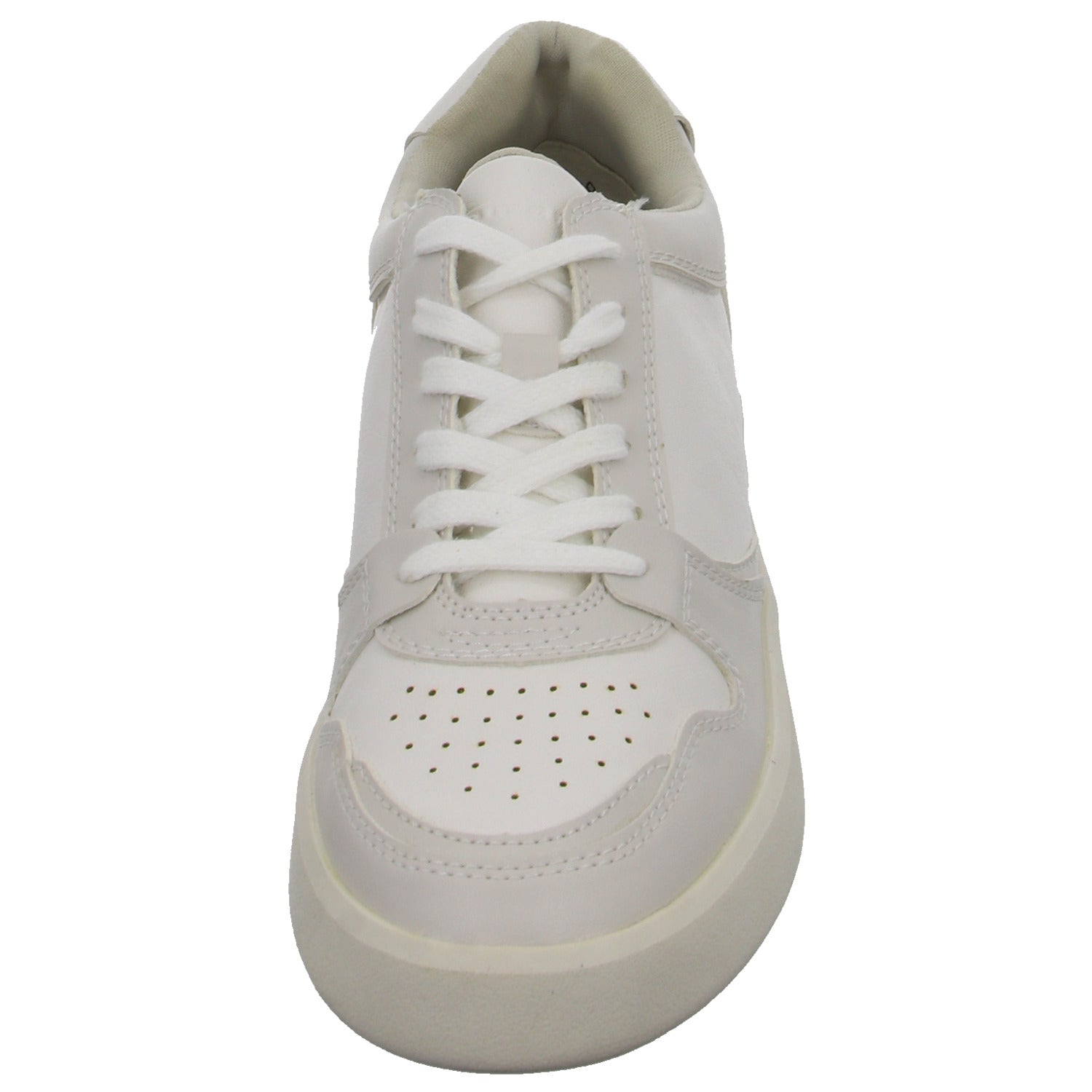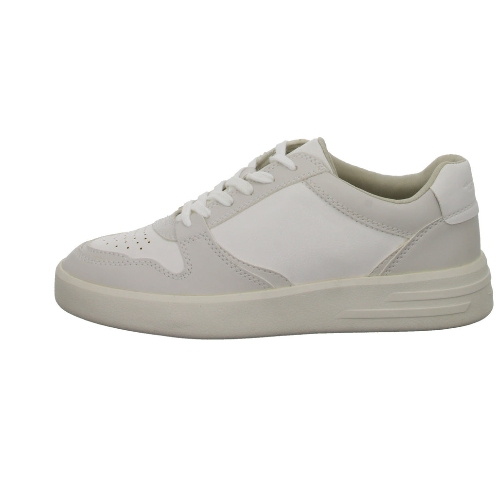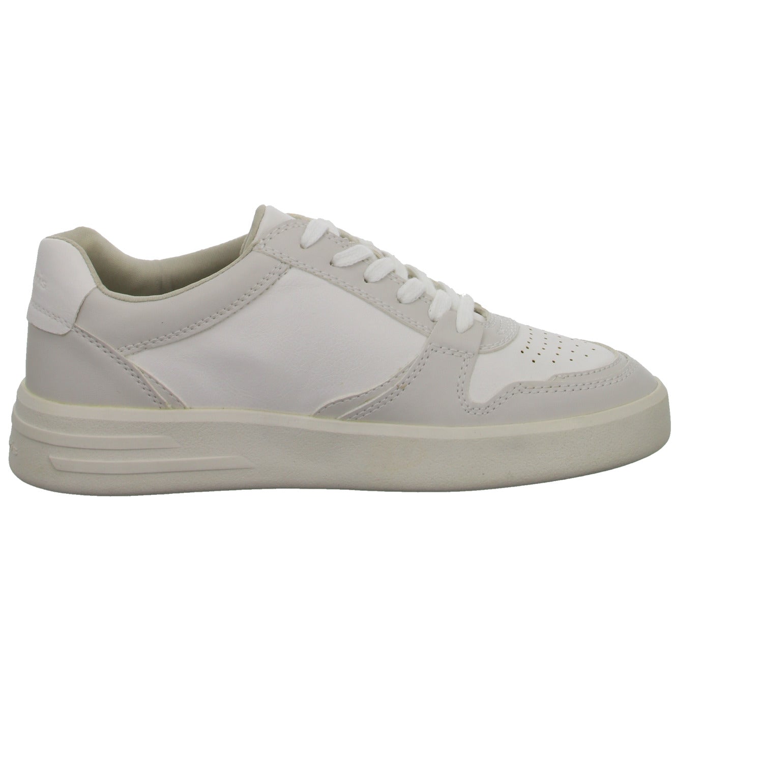Das Obermaterial besteht aus im Grundton hochwertigem hellgrauem und weißem glattem Kunstleder.