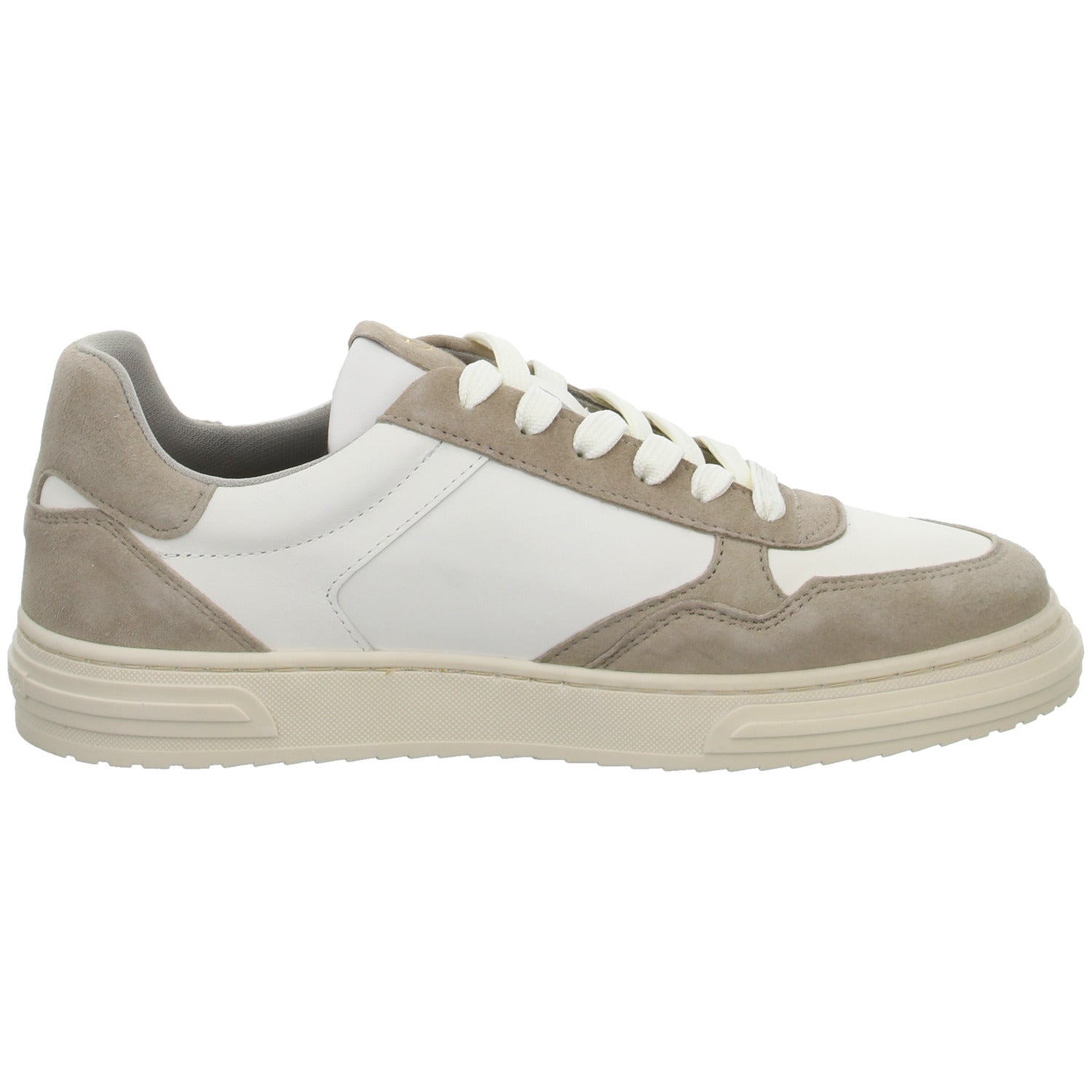 Gefertigt aus hochwertigen im Grundton beigem Veloursleder und weißem Kunstleder.