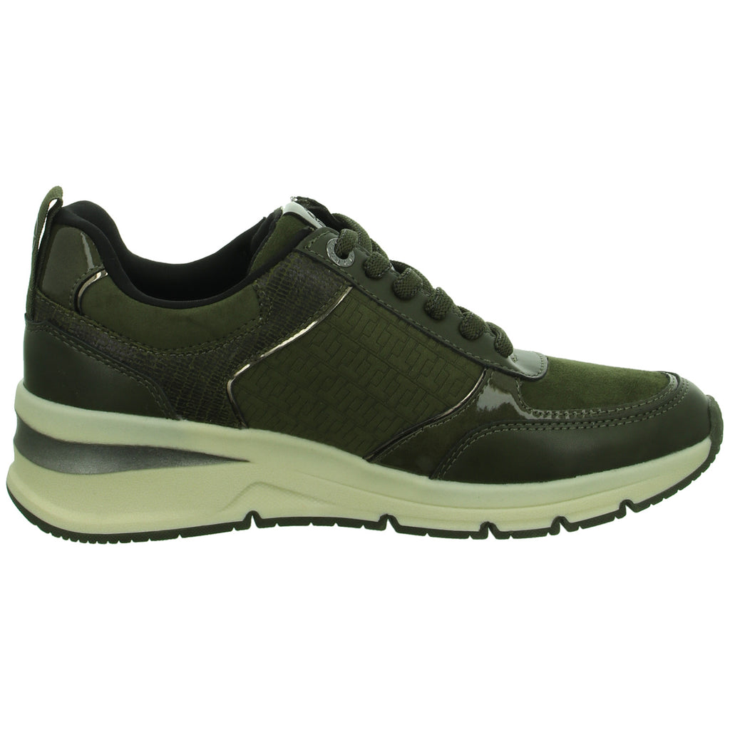 Die sportliche Laufsohle besticht durch eine Keilsohle.
