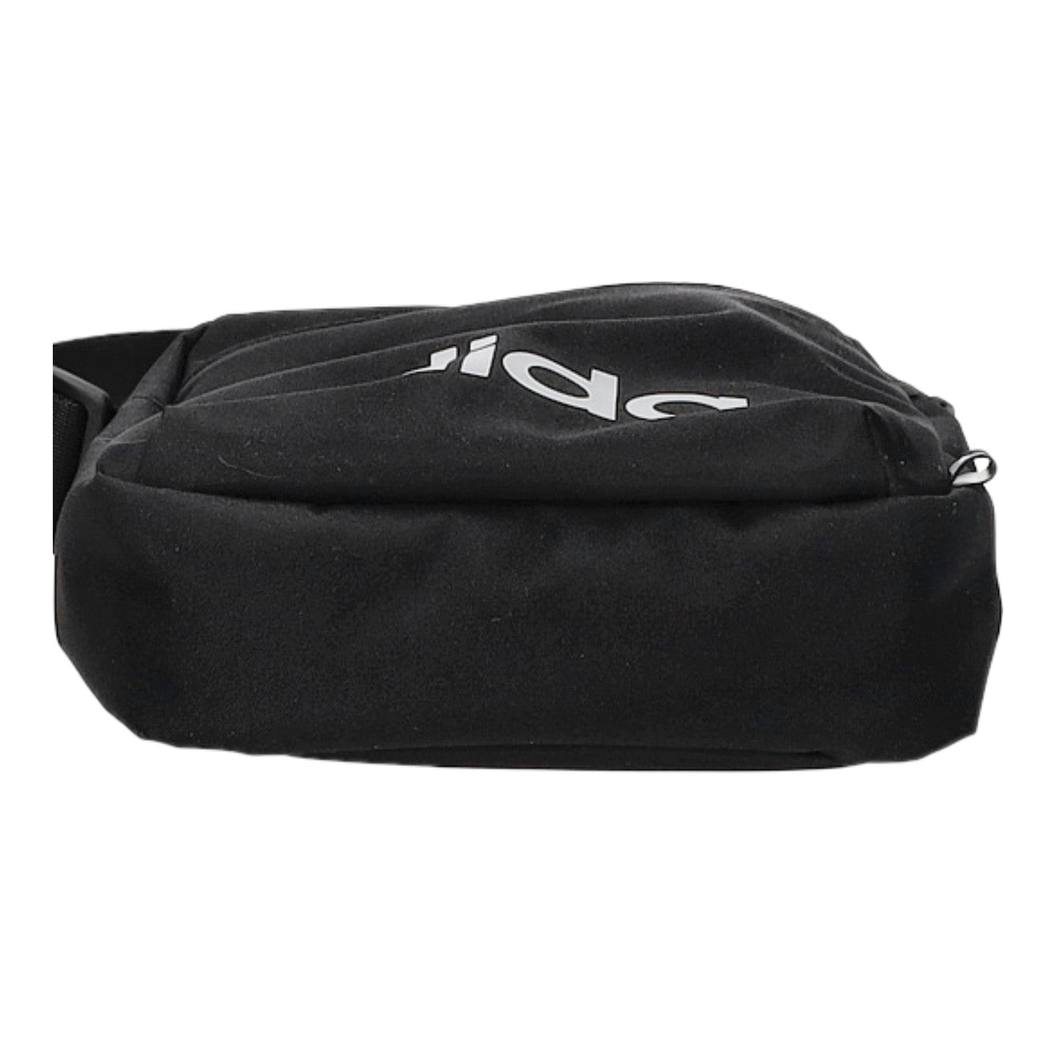 - Obermaterial aus schwarzem Textil mit weißem Logo