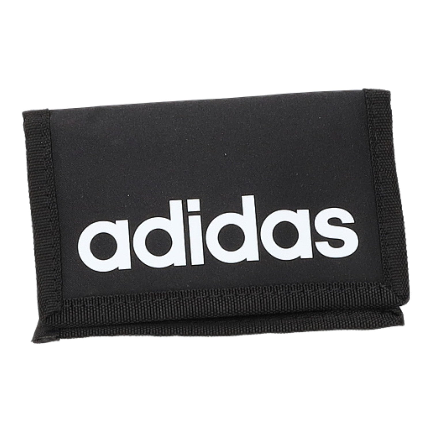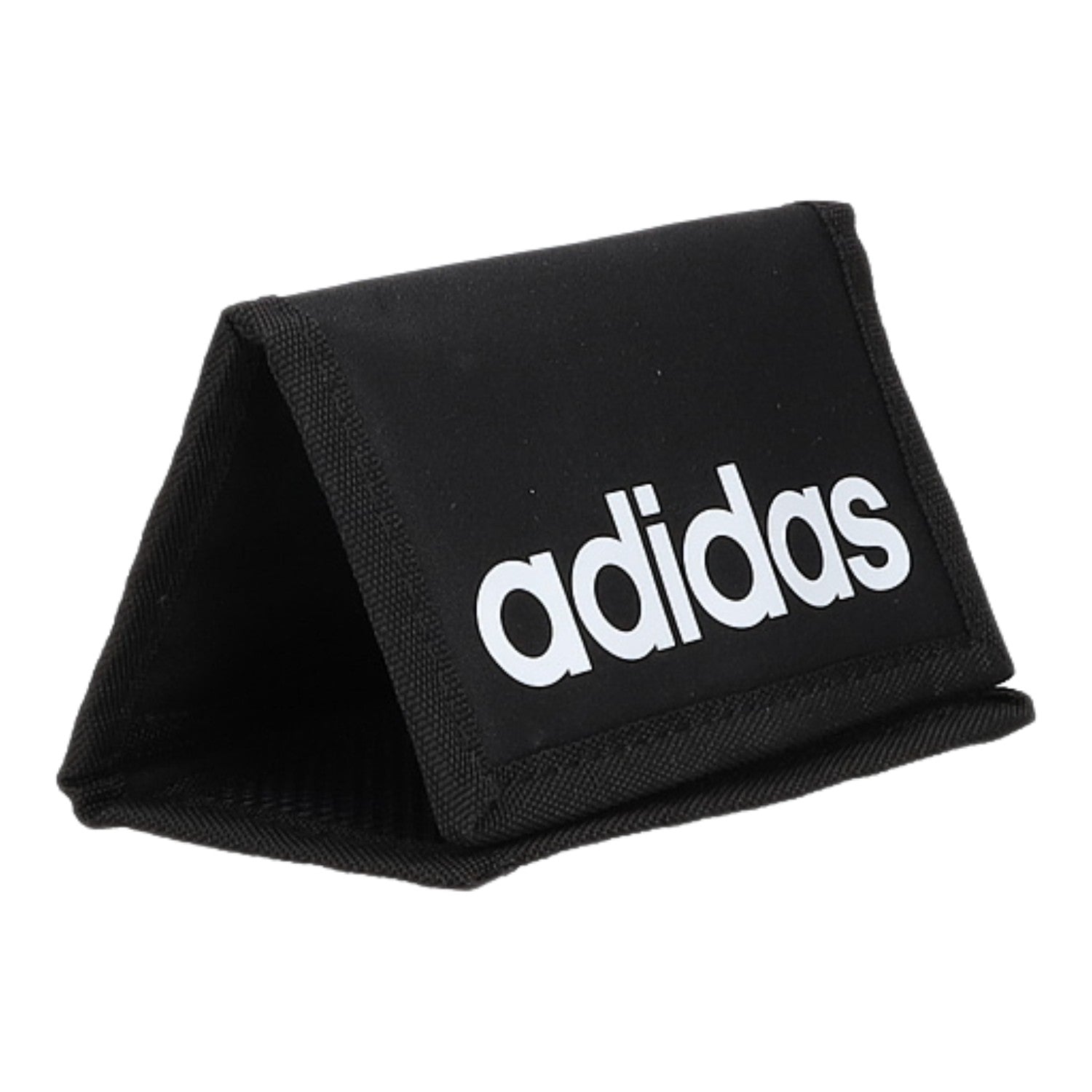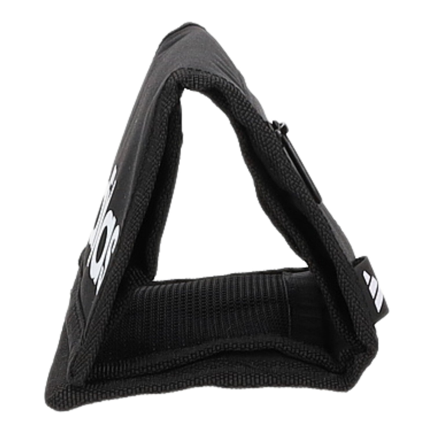 - Obermaterial aus schwarzem Textil mit weißem Logo