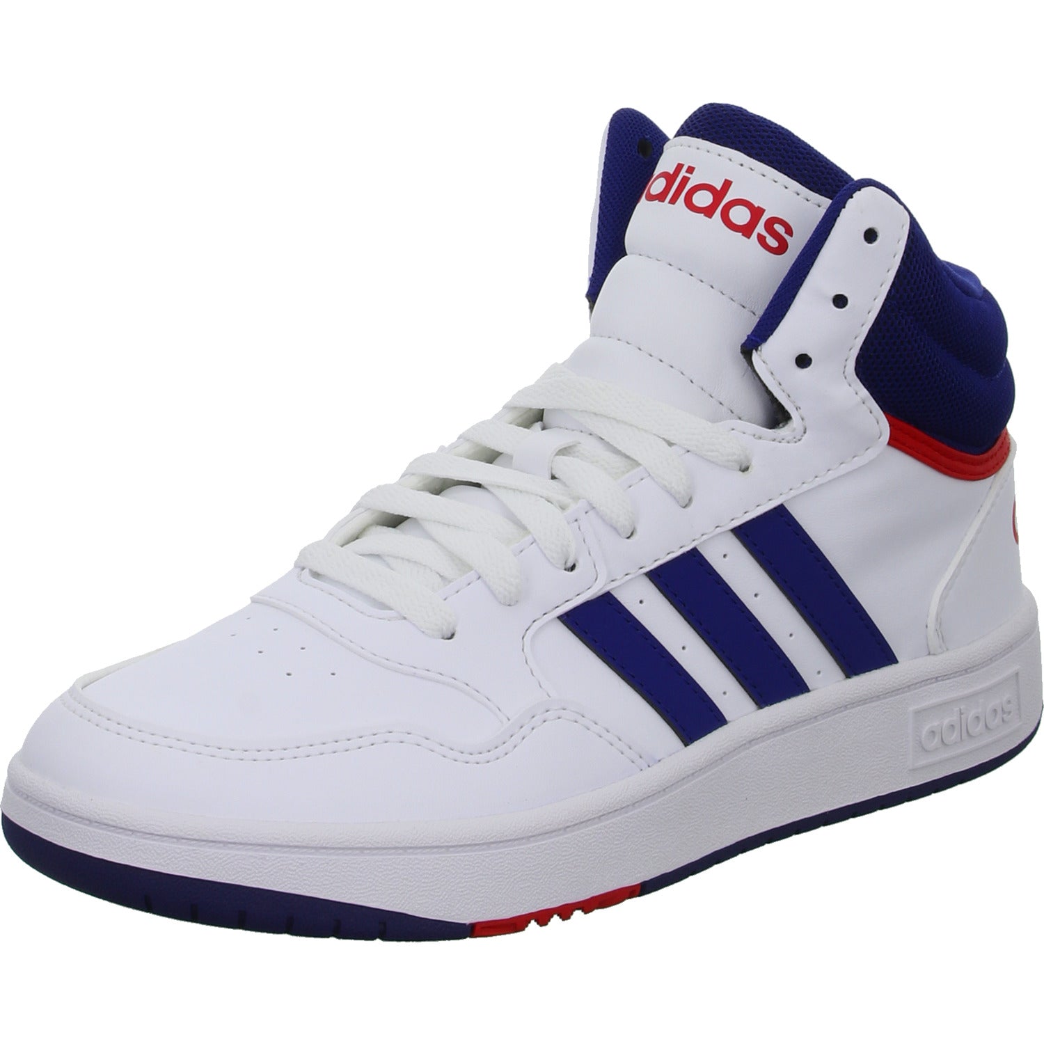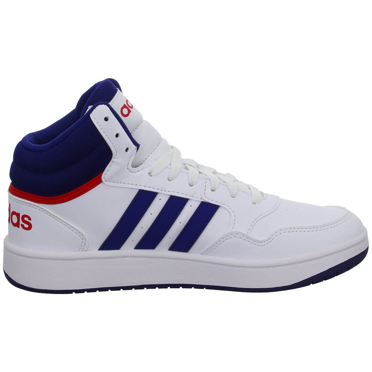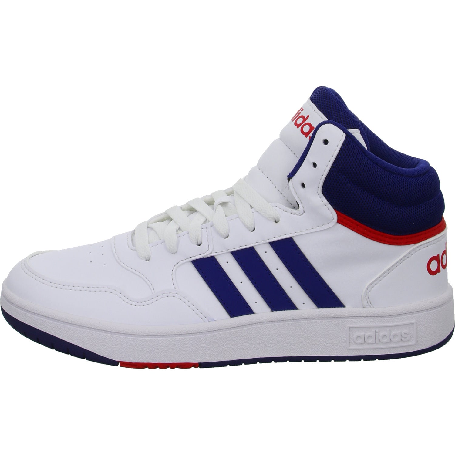 Das Obermaterial besteht aus hochwertigem im Grundton weißem glattem Kunstleder.