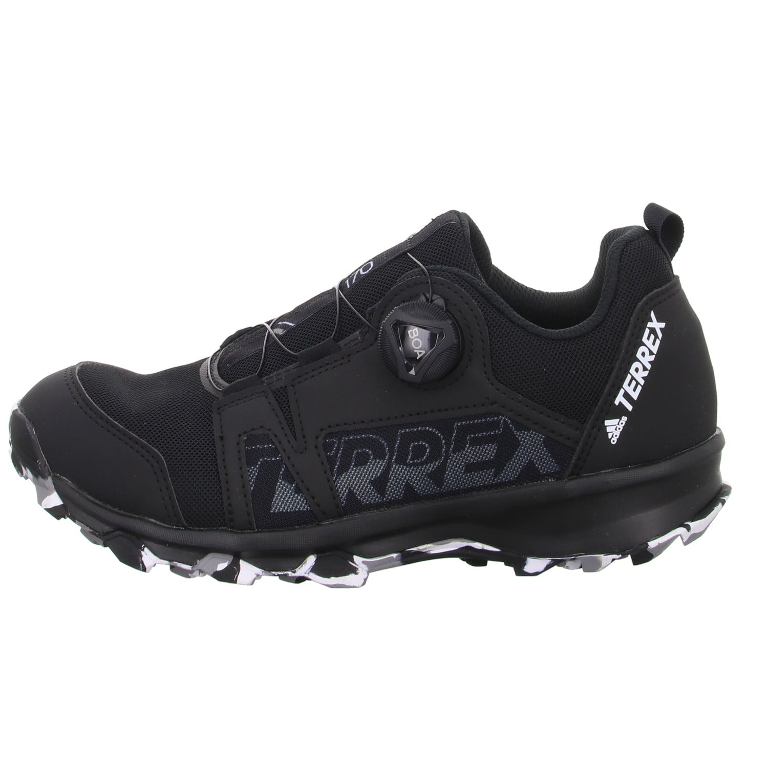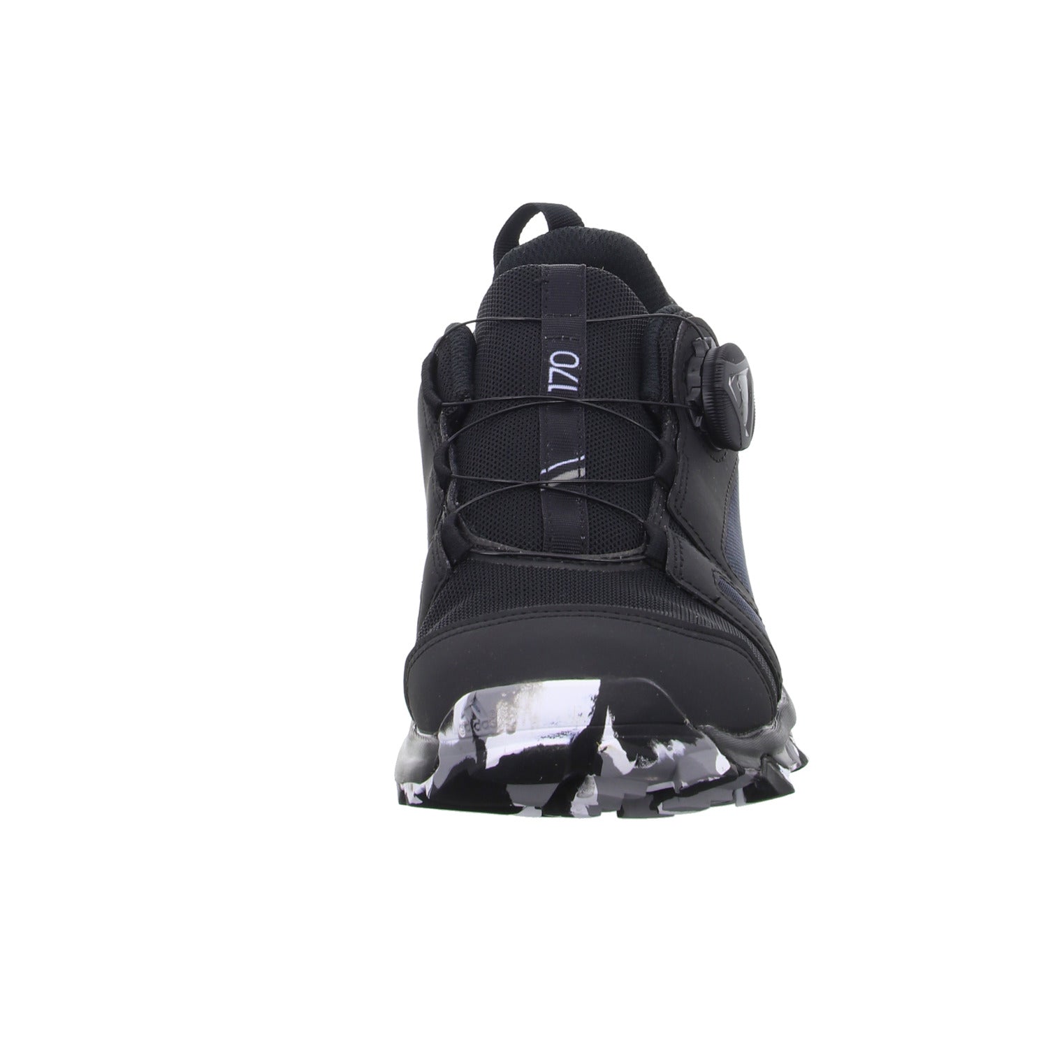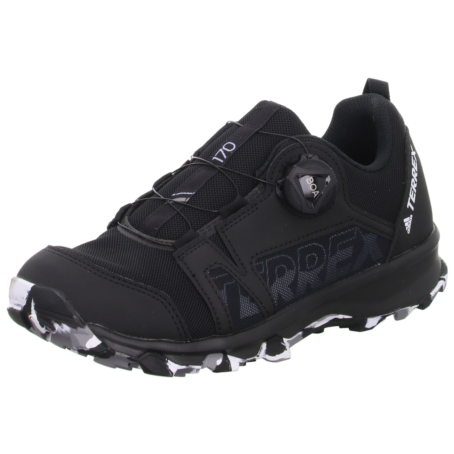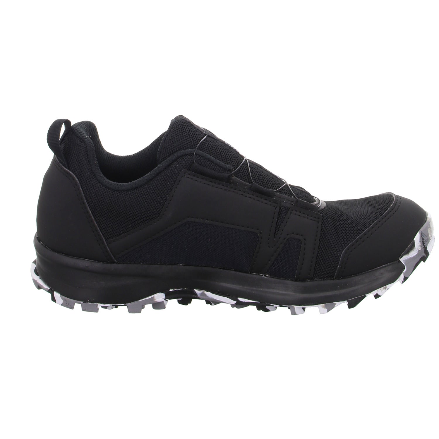 Das Obermaterial besteht aus hochwertigem schwarzem glattem Kunstleder und Textil.