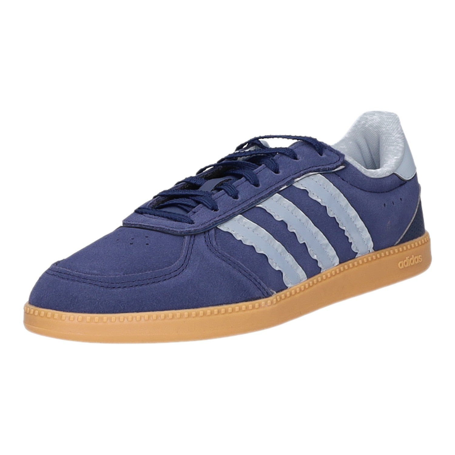 Das Obermaterial besteht aus hochwertigem im Grundton blauem Veloursleder.