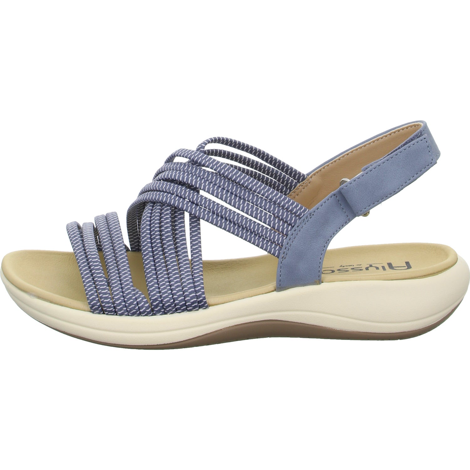 Das Obermaterial besteht aus hochwertigem mittel blauem textilem Obermaterial.