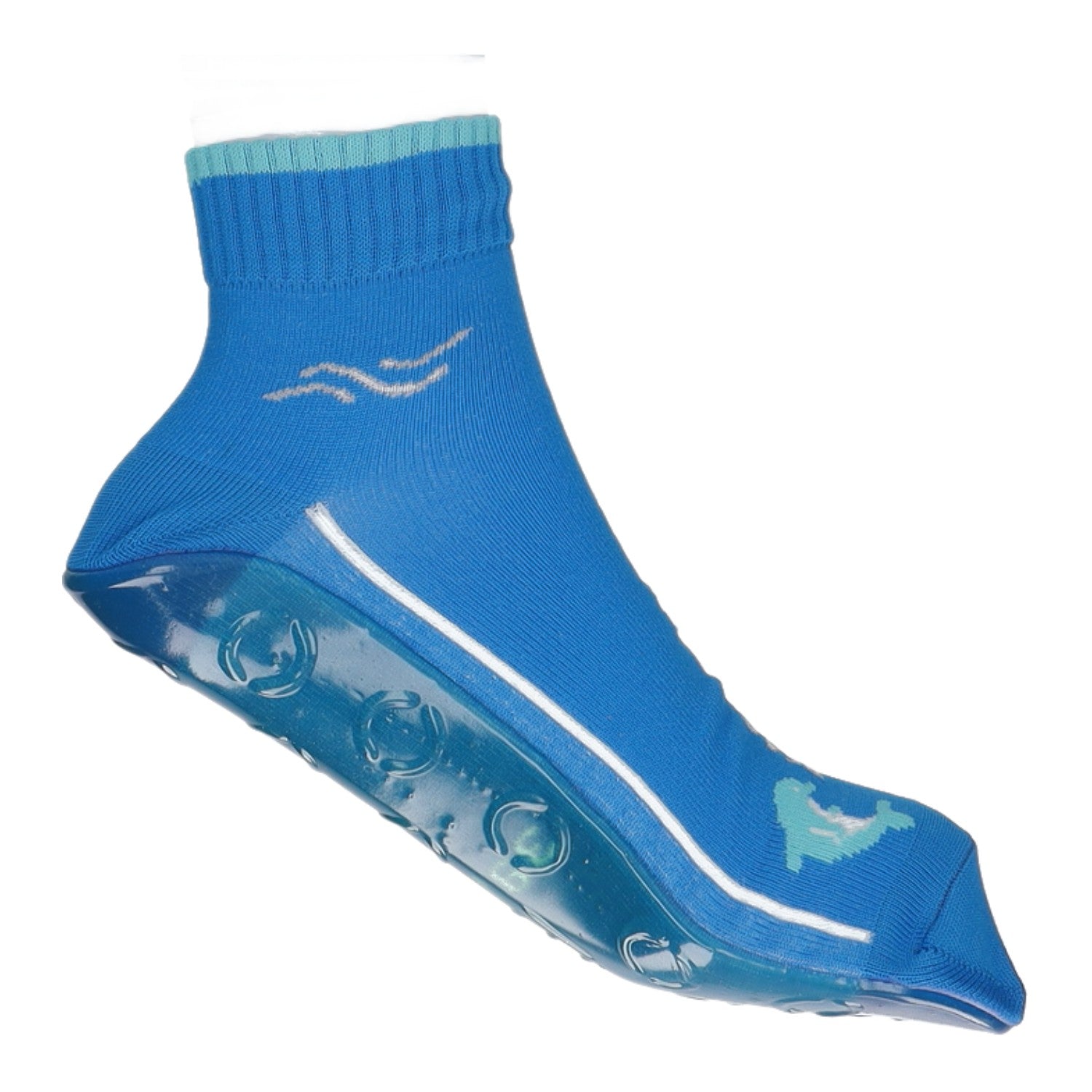 Die Strümpfe haben eine rutschfeste Laufsohe aus Gummi