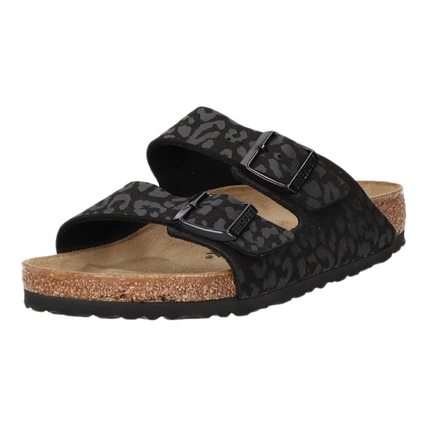 Zwei verstellbare Riemen über dem Rist ermöglichen ein optimales Anpassen an den Fuß. Das Obermaterial besteht aus weichem im Grundton schwarzem glattem Kunstleder mit der trendigen Leo Optik. Das Innenfutter ist aus einem weichen Textilmaterial gefertigt. Die Lederdecksohle sorgt für besten Tragekomfort. Die Laufsohle besteht aus Synthetik. Die normale Weite (Regular Fit) sorgt für einen hohen Tragekomfort bei normal breiten Füßen.