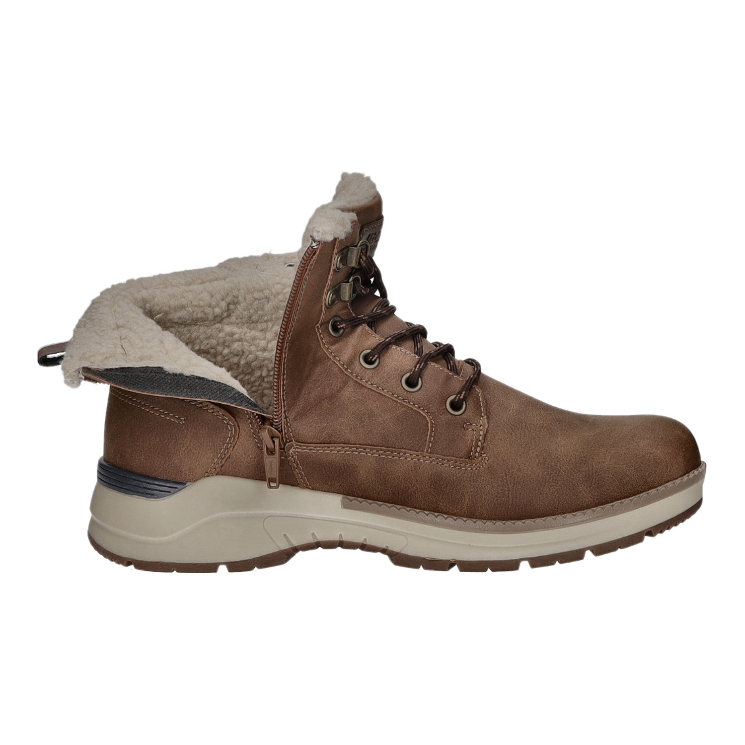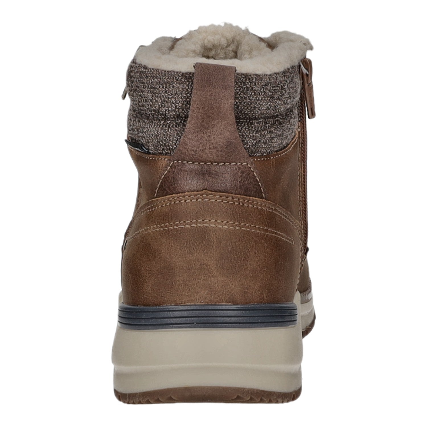 Das Futtermaterial besteht aus einem kurzen Kunstfell und die Decksohle aus Textil.