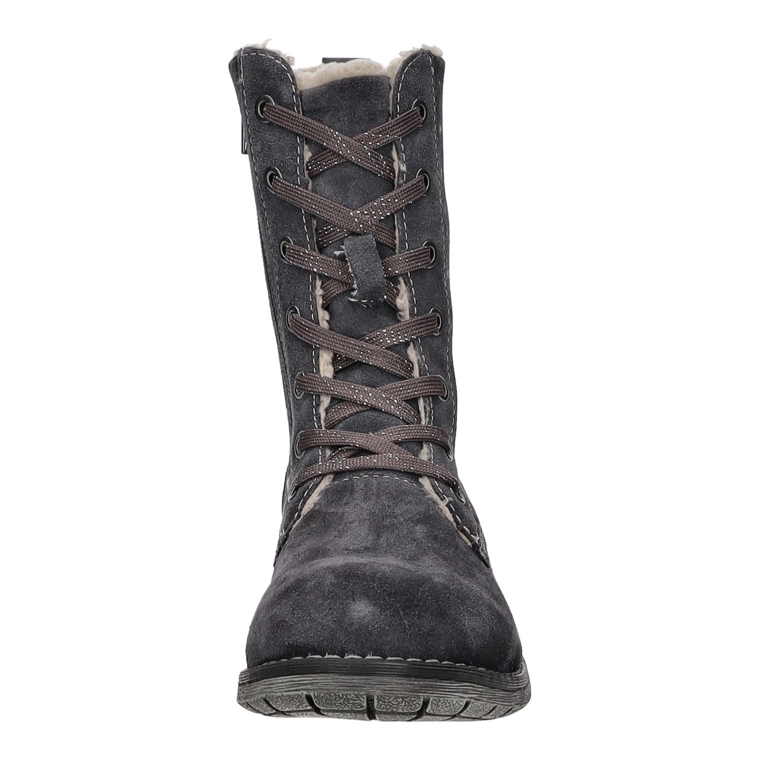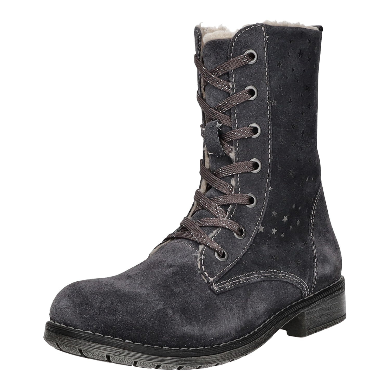 Das Futtermaterial besteht aus einem kurzen Kunstfell und die Decksohle aus Textil.