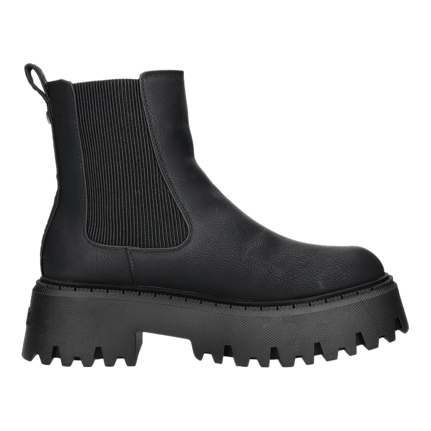 Der Schuh ist mit einer Plateausohle aus Kunststoff ausgestattet.