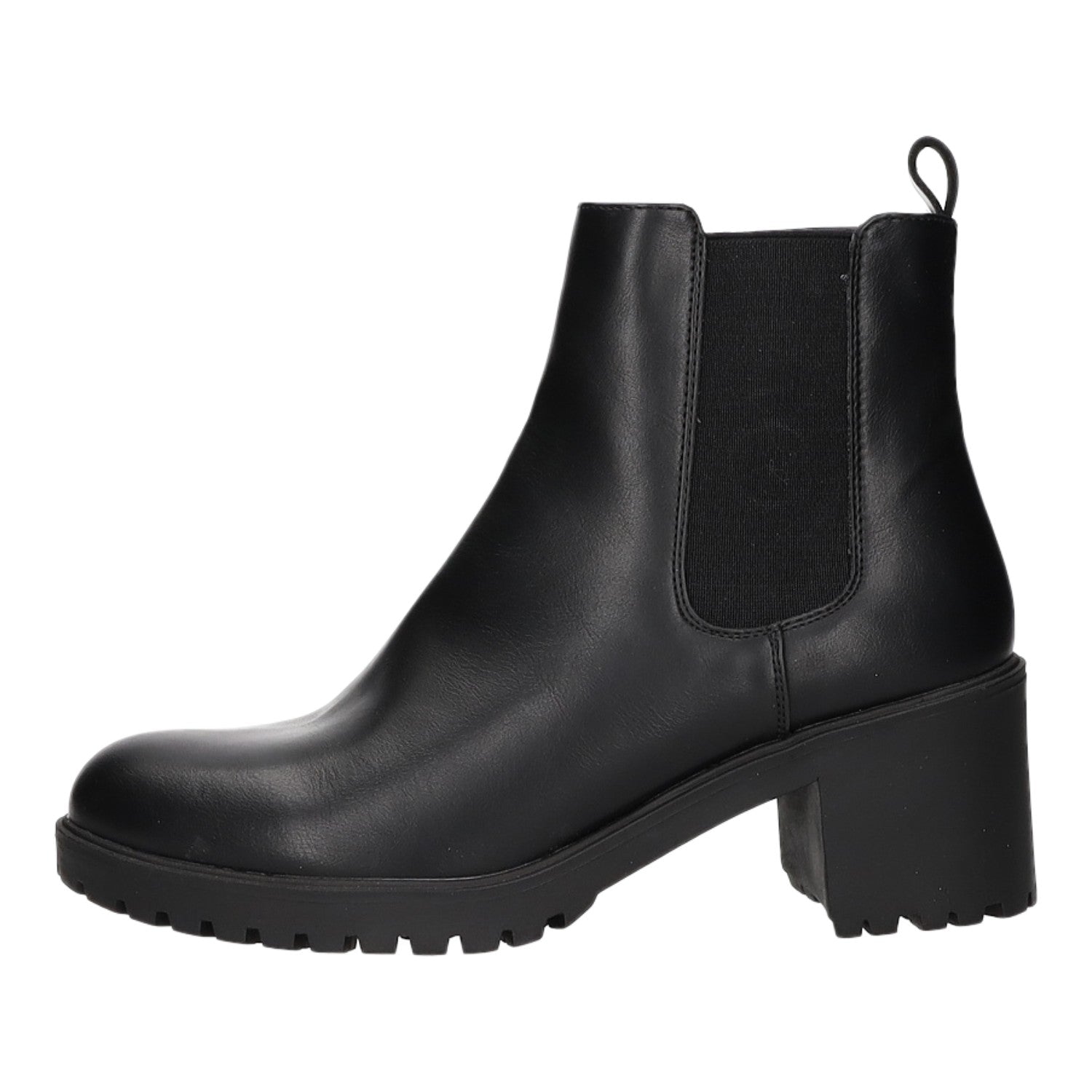Das Obermaterial besteht aus hochwertigem schwarzem glattem Kunstleder.