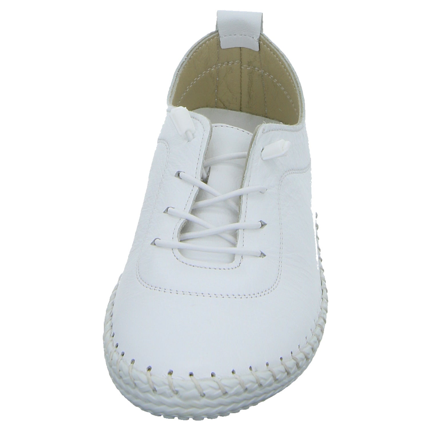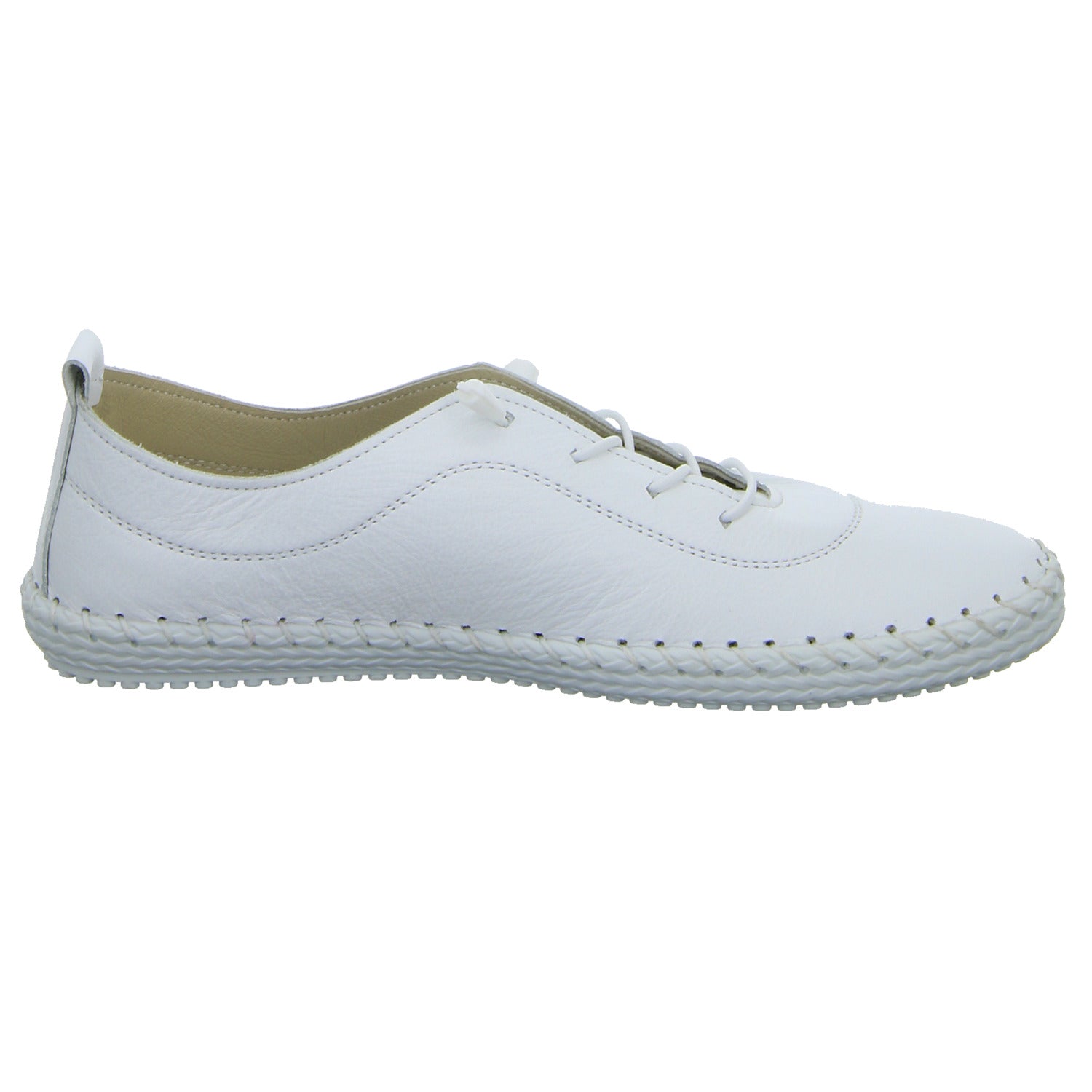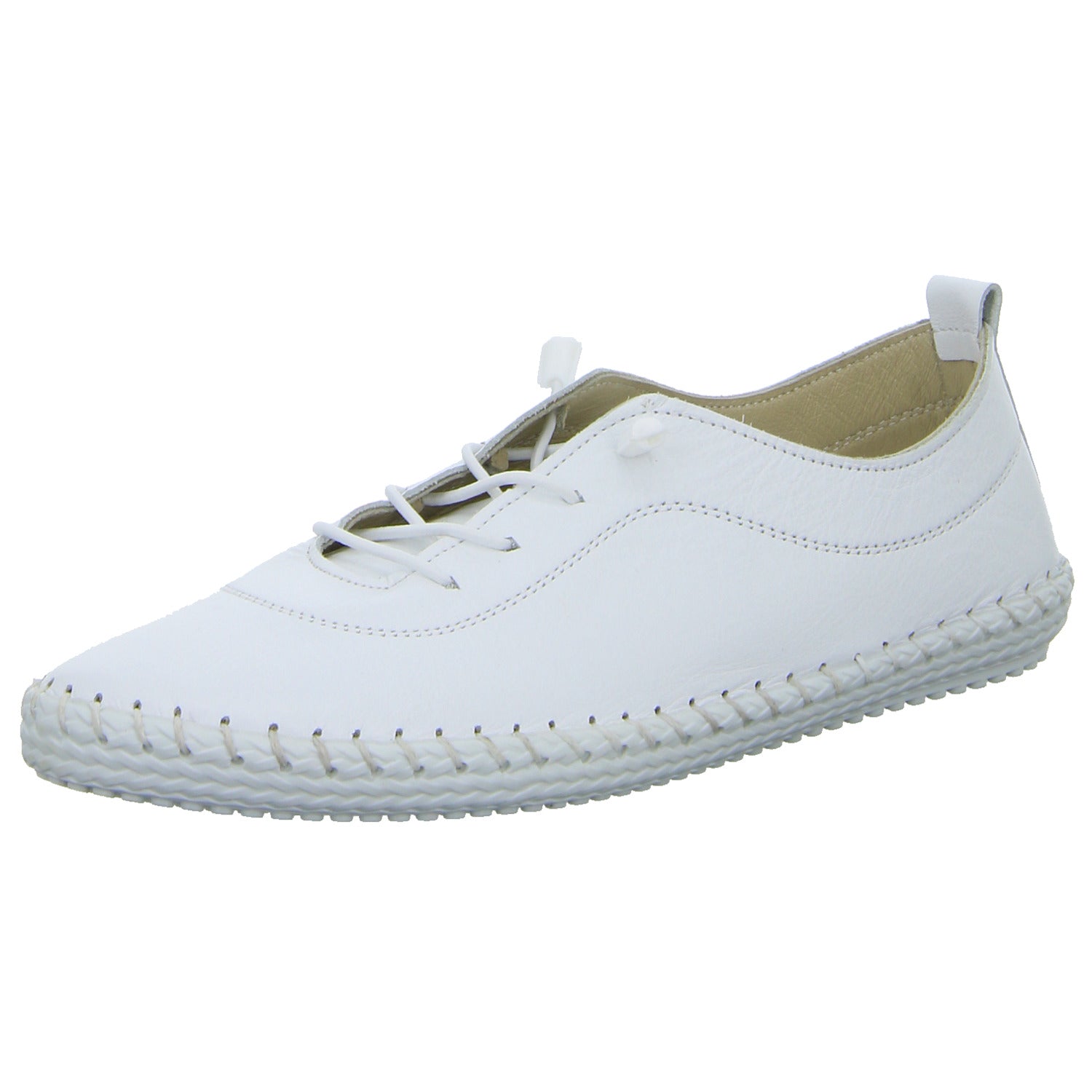 Das Obermaterial besteht aus hochwertigem weißem glattem Leder.
