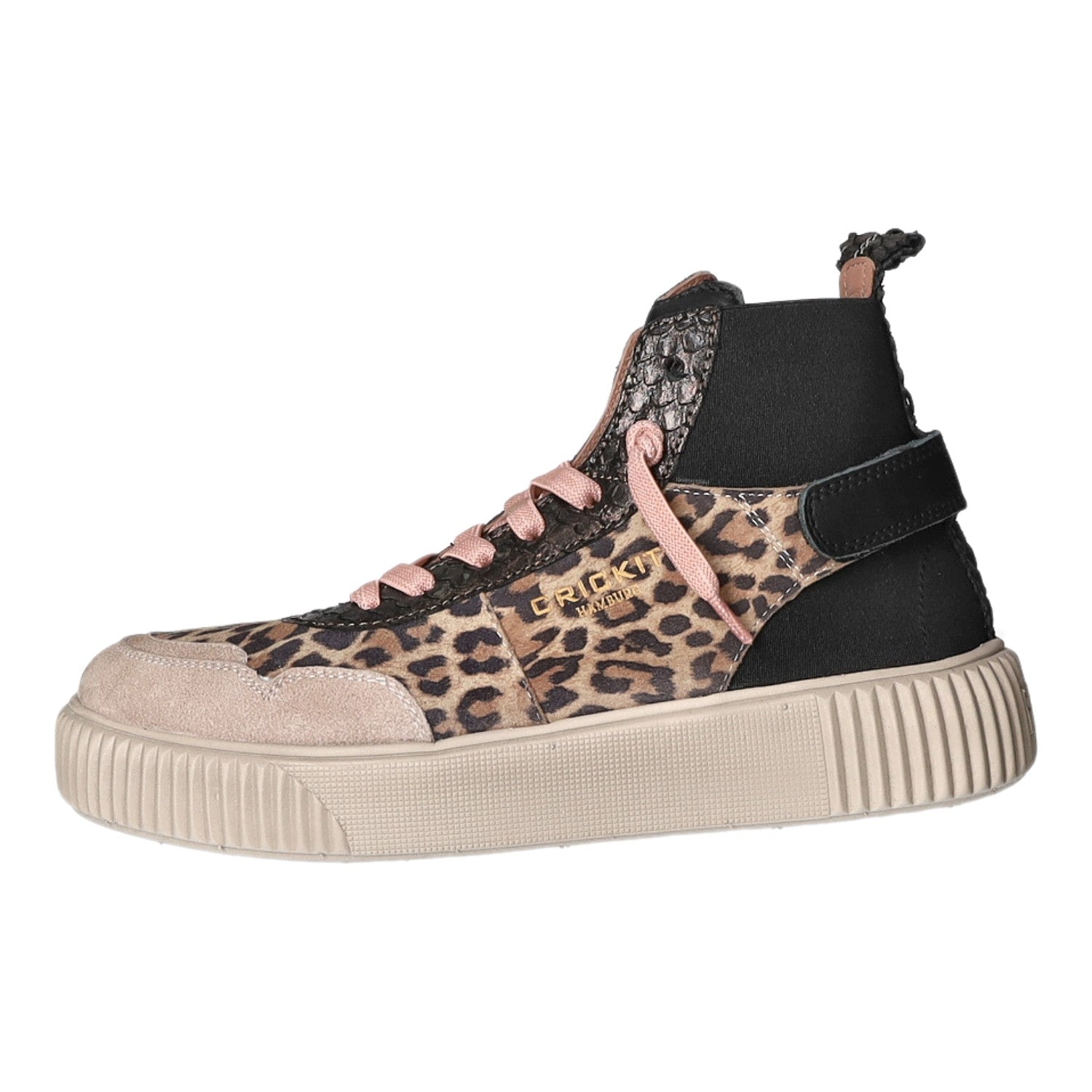 Gefertigt aus hochwertigen beigem Veloursleder in Leo-Optik.
