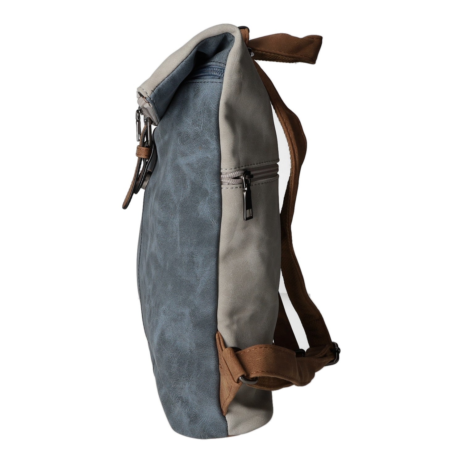 - Seitlich: ein kleines Reißverschlussfach
