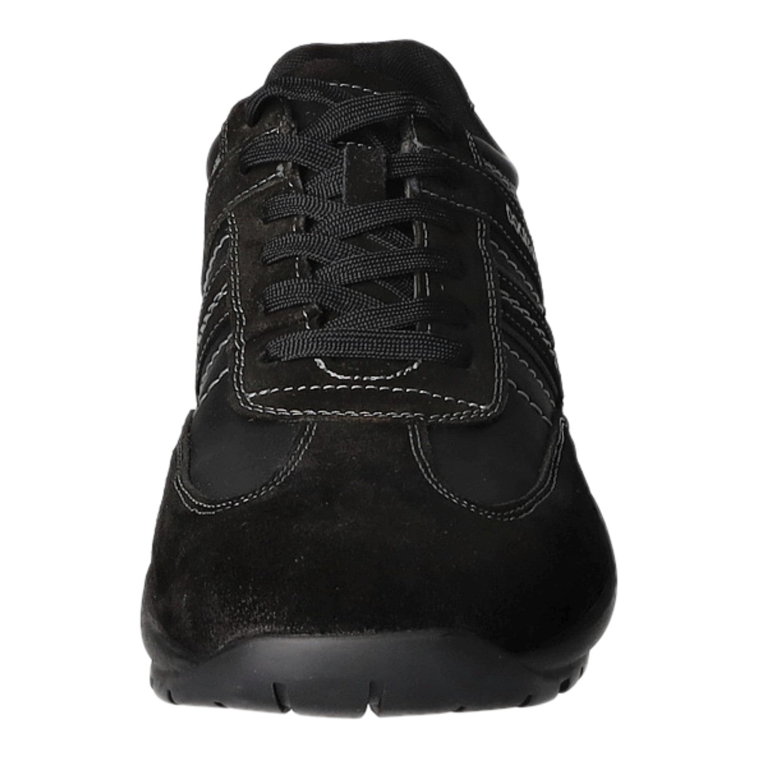 Das Obermaterial besteht aus weichem im Grundton schwarzem Rau- und Kunstleder.