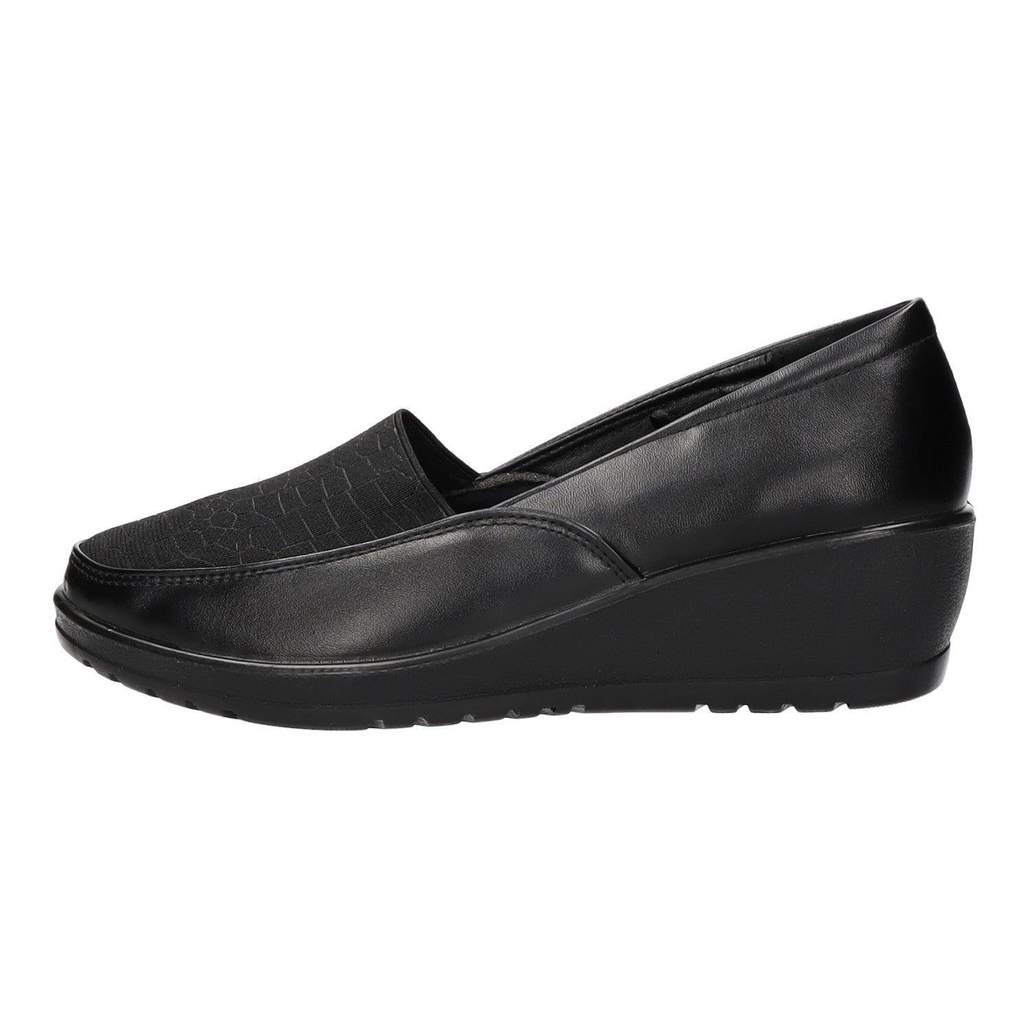 Die sportliche Laufsohle besticht durch eine Keilsohle.