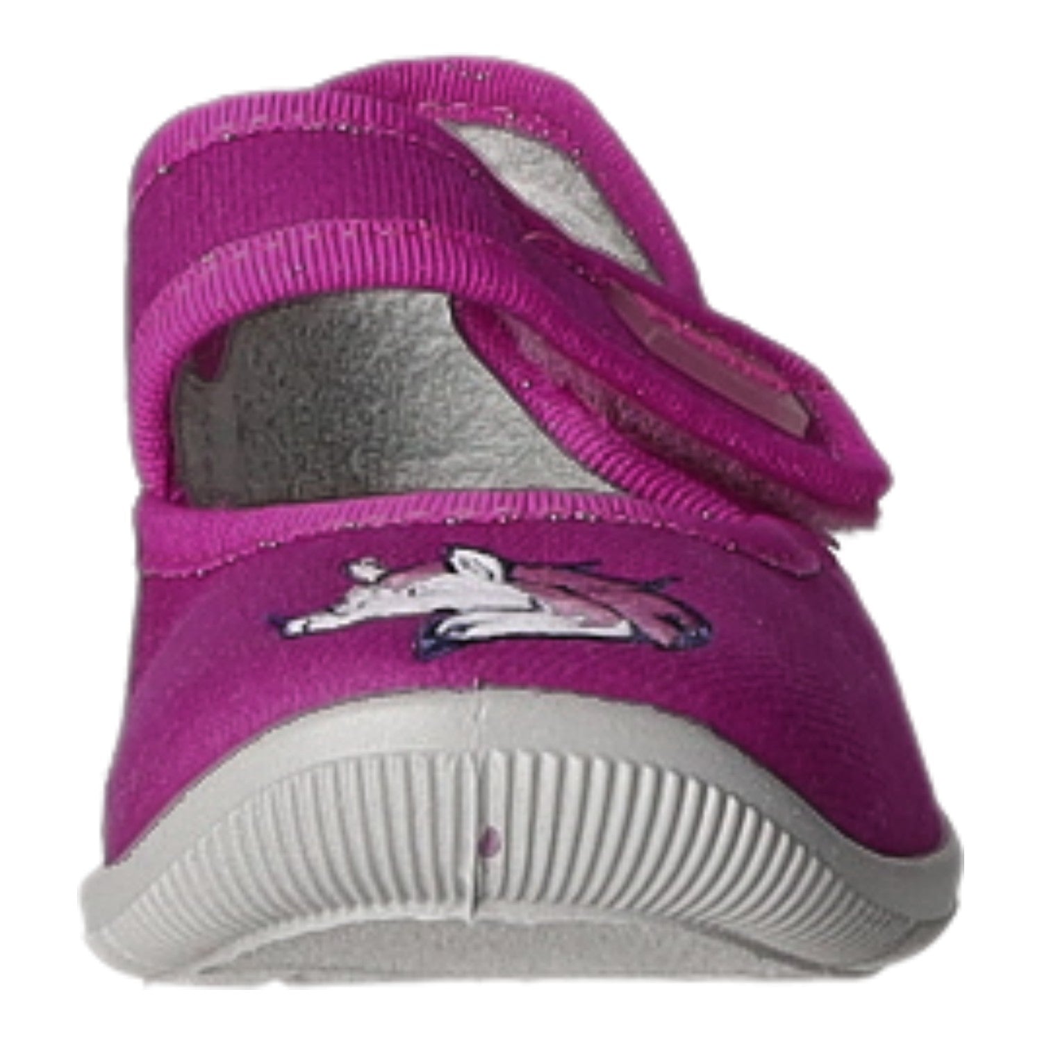 Das Obermaterial besteht aus weichem im Grundton pinkfarbenem Textil.