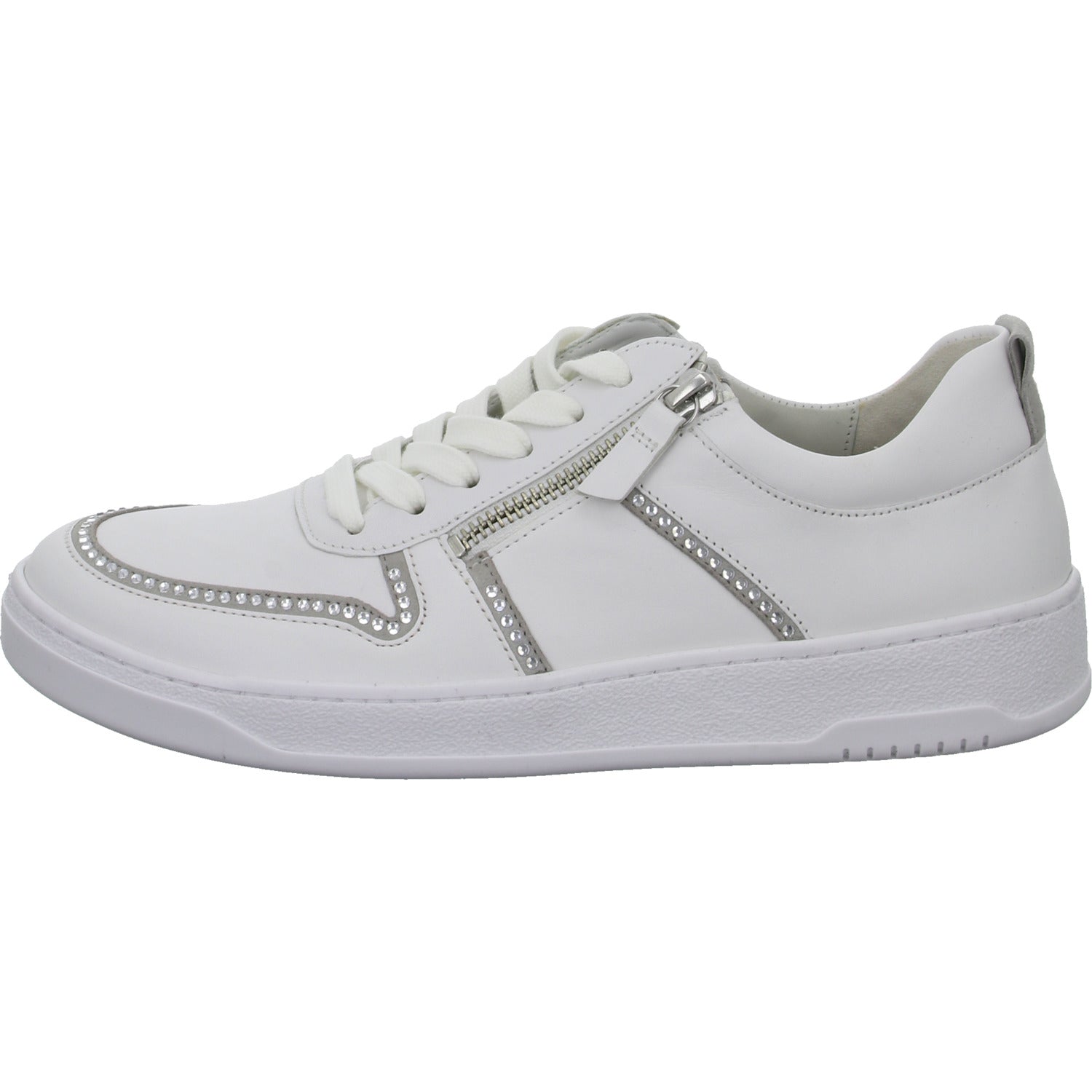 Als modisches Highlight ist der Schuh mit Strasssteinen verziert.