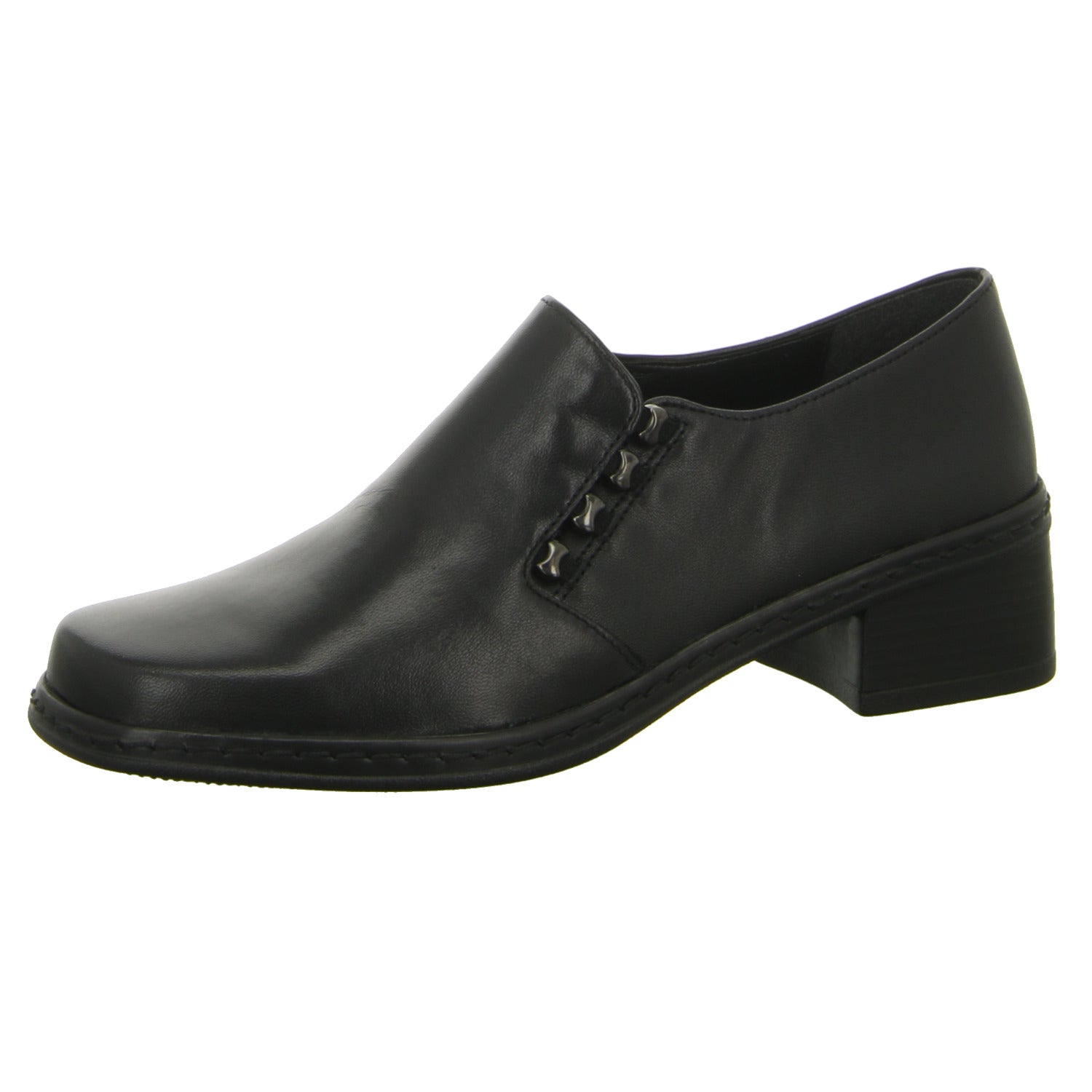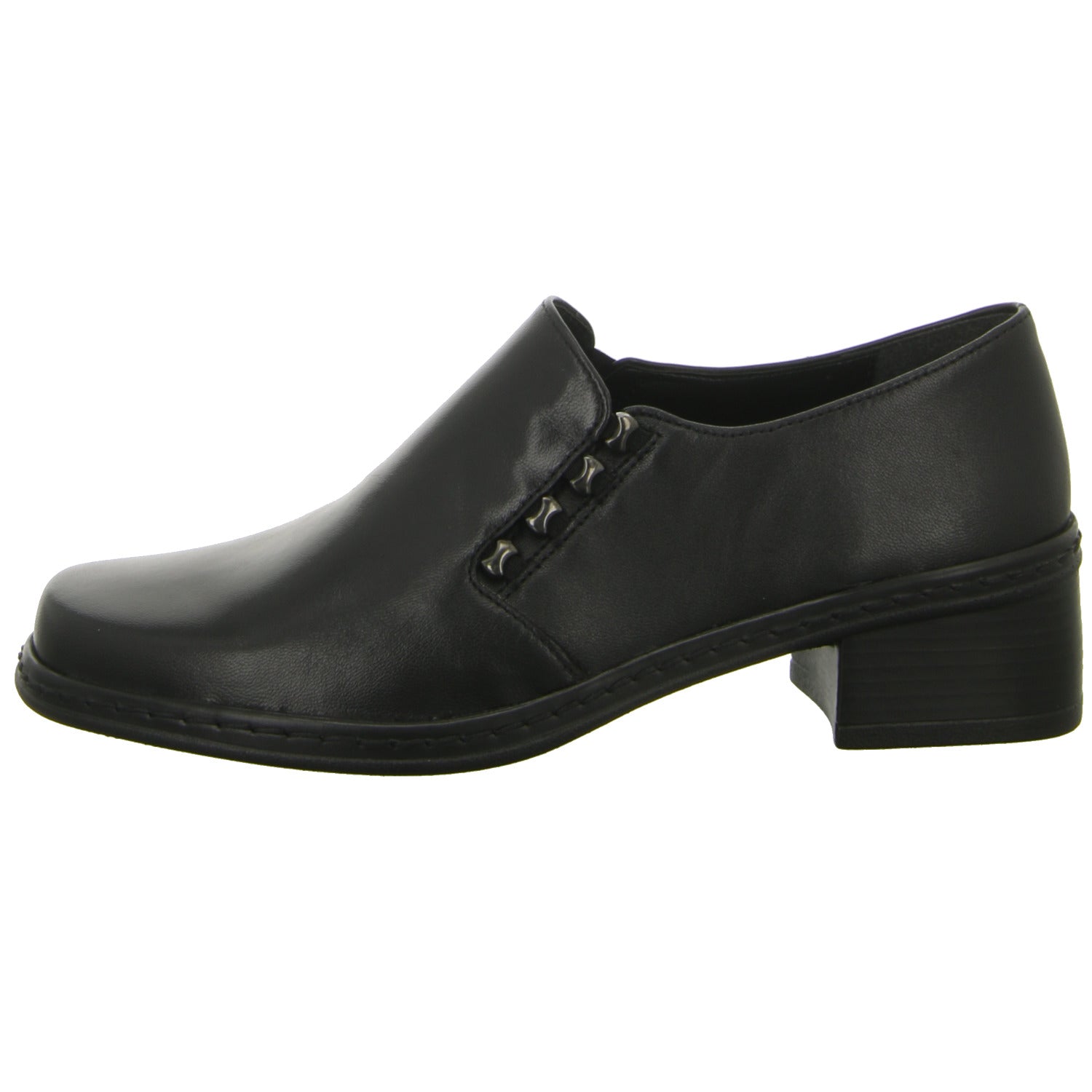 Die Laufsohle besteht aus Synthetik und weist einen dezenten Blockabsatz auf.