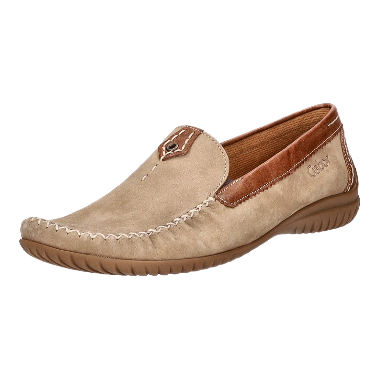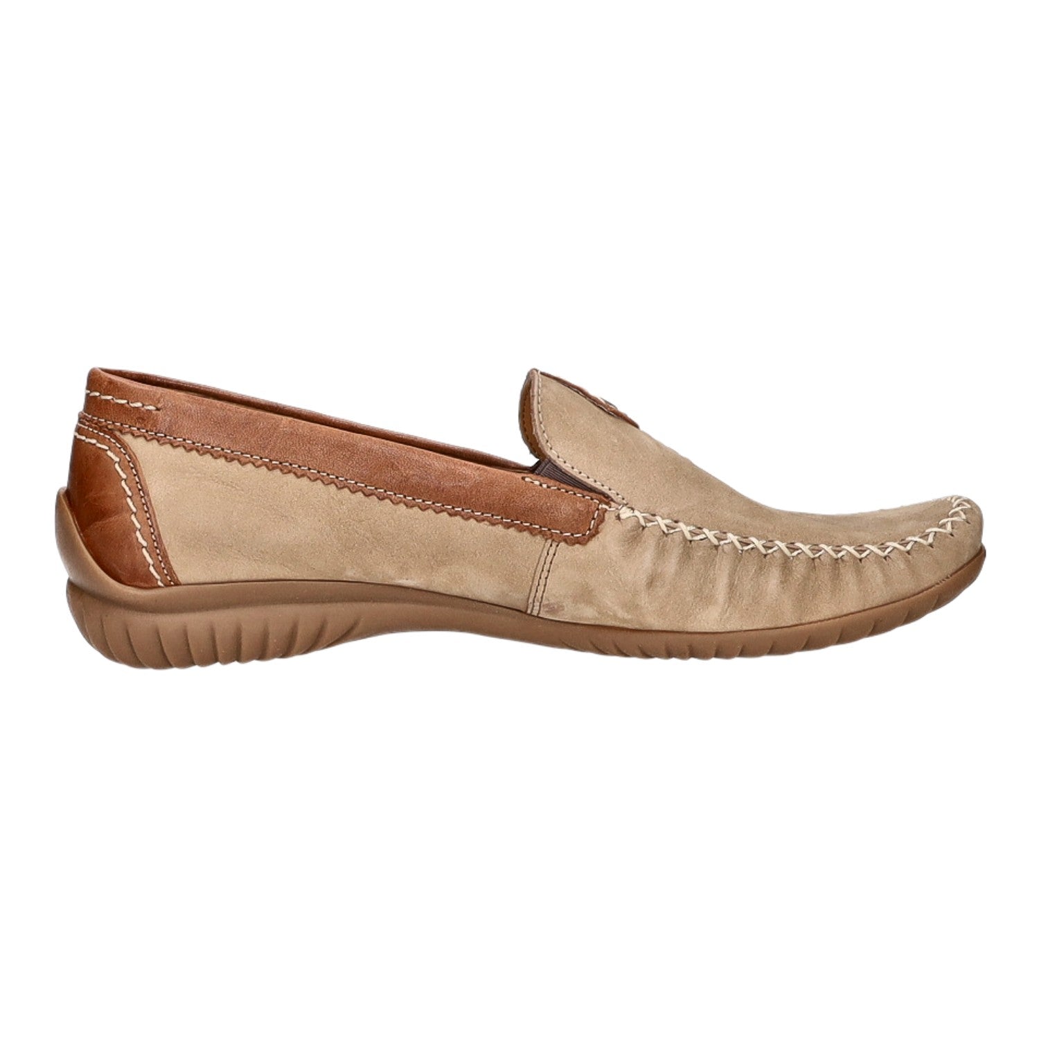 Mit diesem Obermaterial bestehend aus im Grundton beigem Nubukleder liegen Sie voll im Trend!
