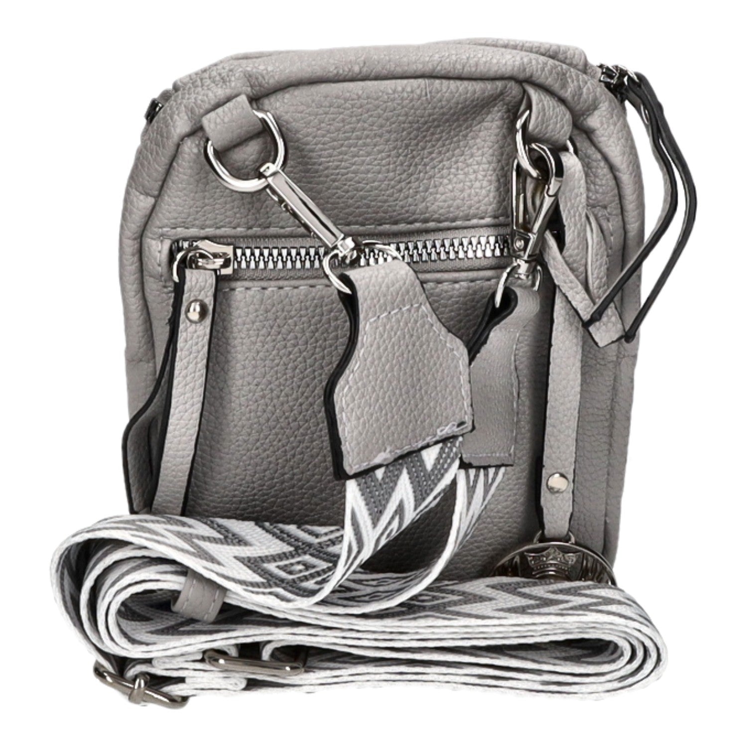 - Hinten: ein Reißverschlussfach