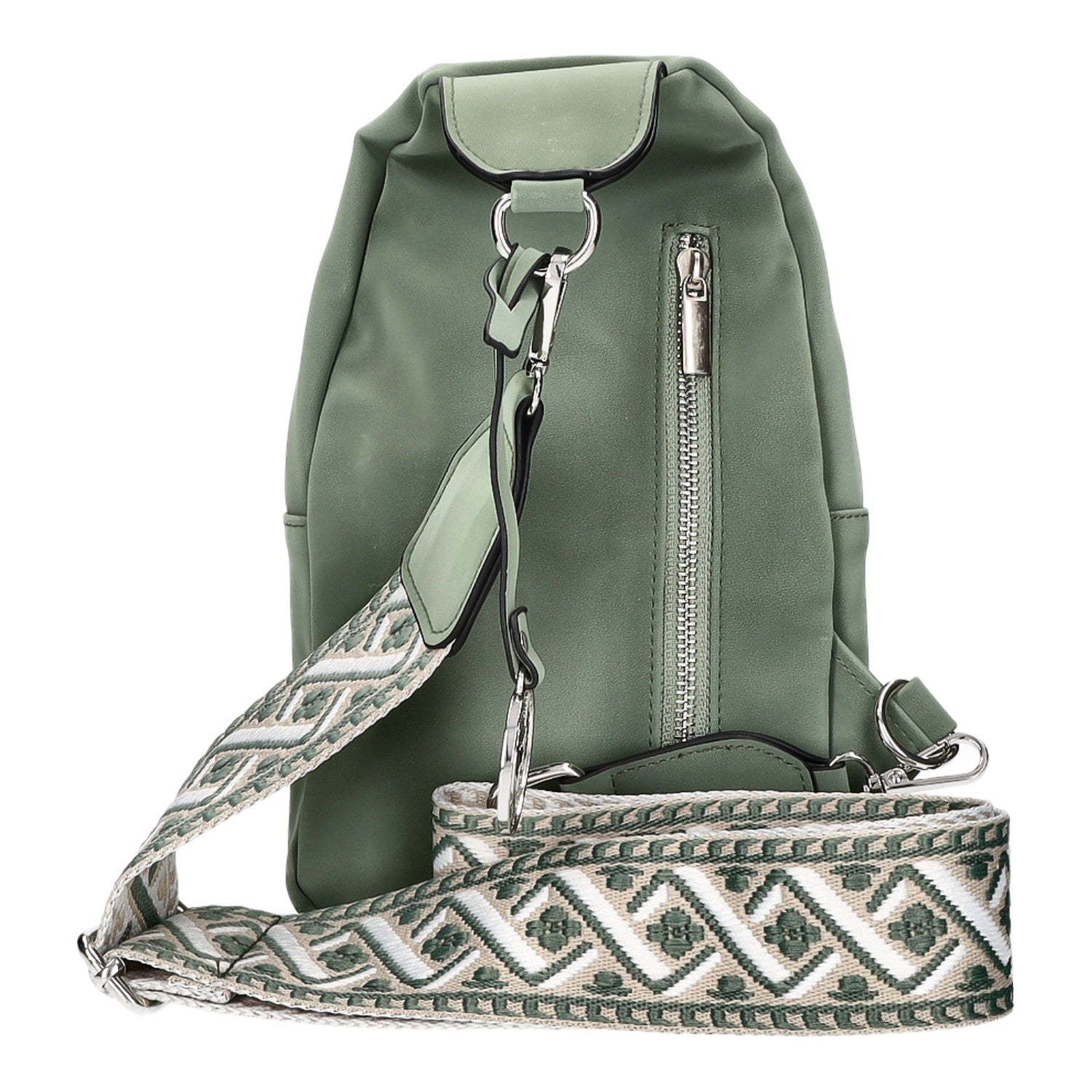 - Hinten: ein Reißverschlussfach