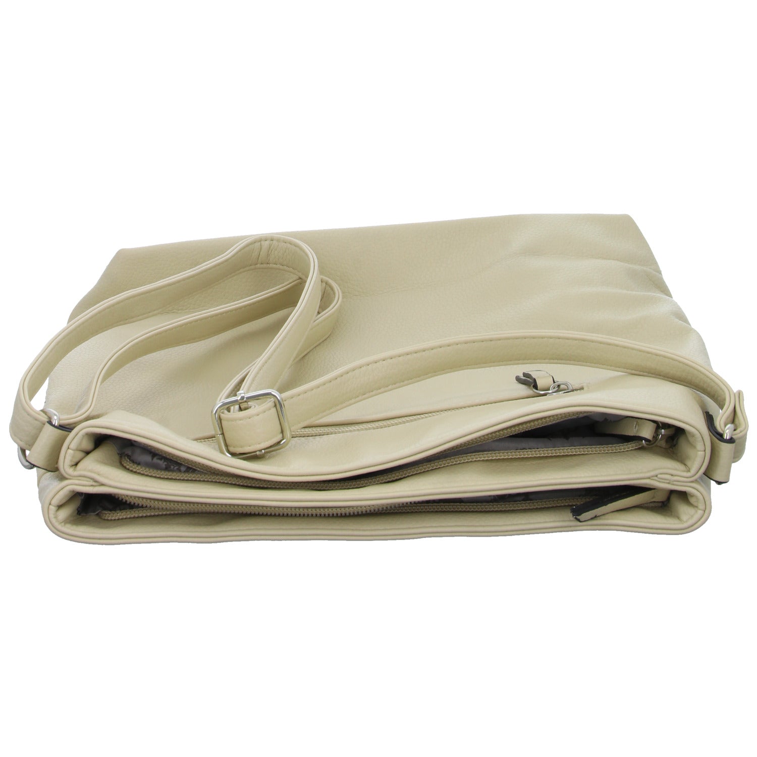Die Tasche hat zwei größere Fächer mit Reissverschluss.