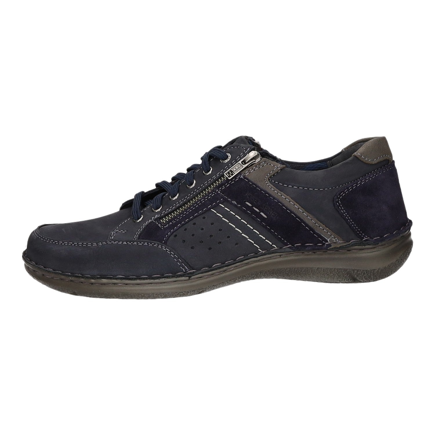 Das Obermaterial besteht aus hochwertigem im Grundton blauem Veloursleder. Der Schuh ist mit einem