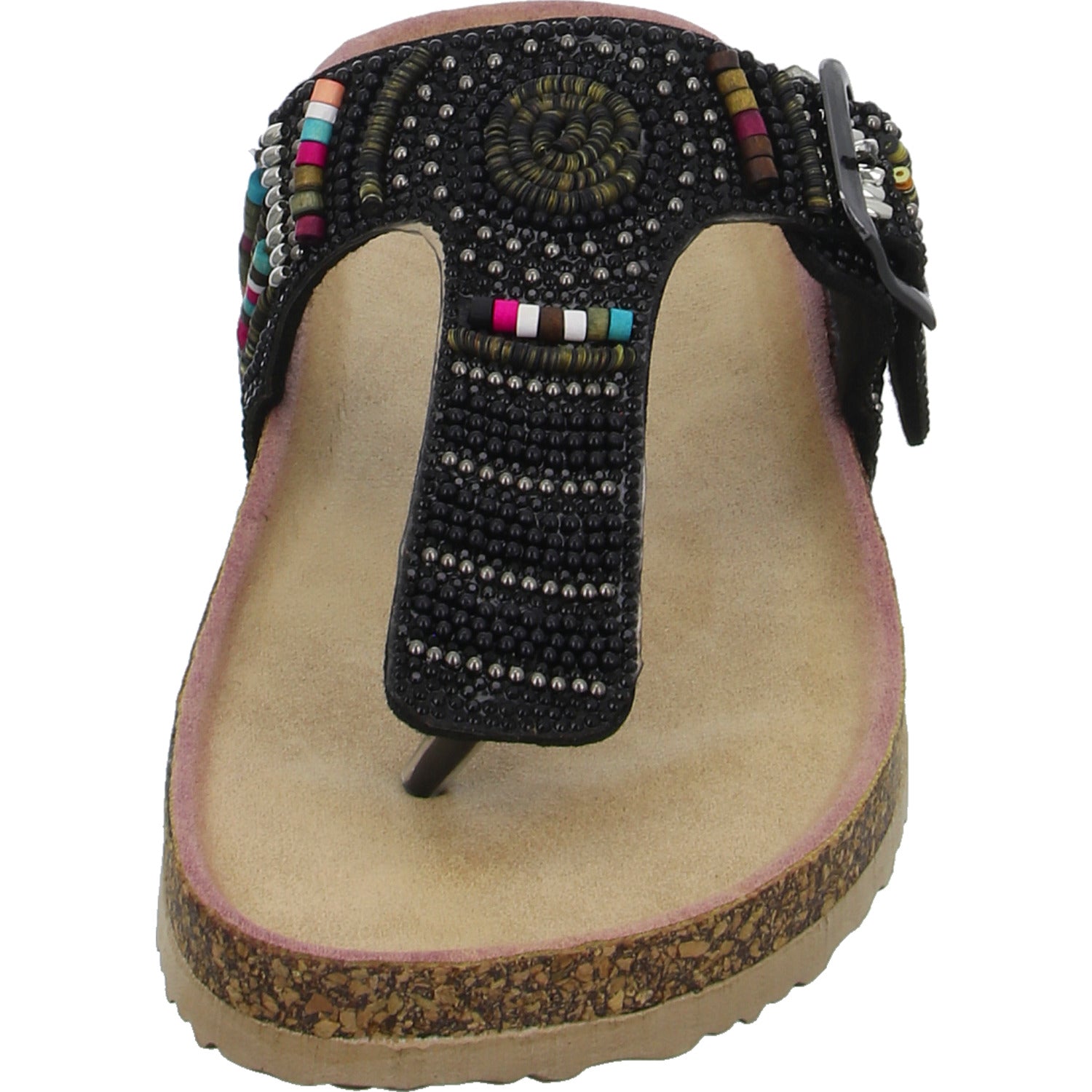 Dieses Obermaterial ist ein echtes Highlight! Gefertigt aus im Grundton schwarzem glattem Kunstleder, dass mit zahllosen Perlen und Strasssteinchen besetzt ist. Der Schuh ist mit einem textilen Futtermaterial und einer besonders strapazierfähigen Kunstlederdecksohle ausgestattet.