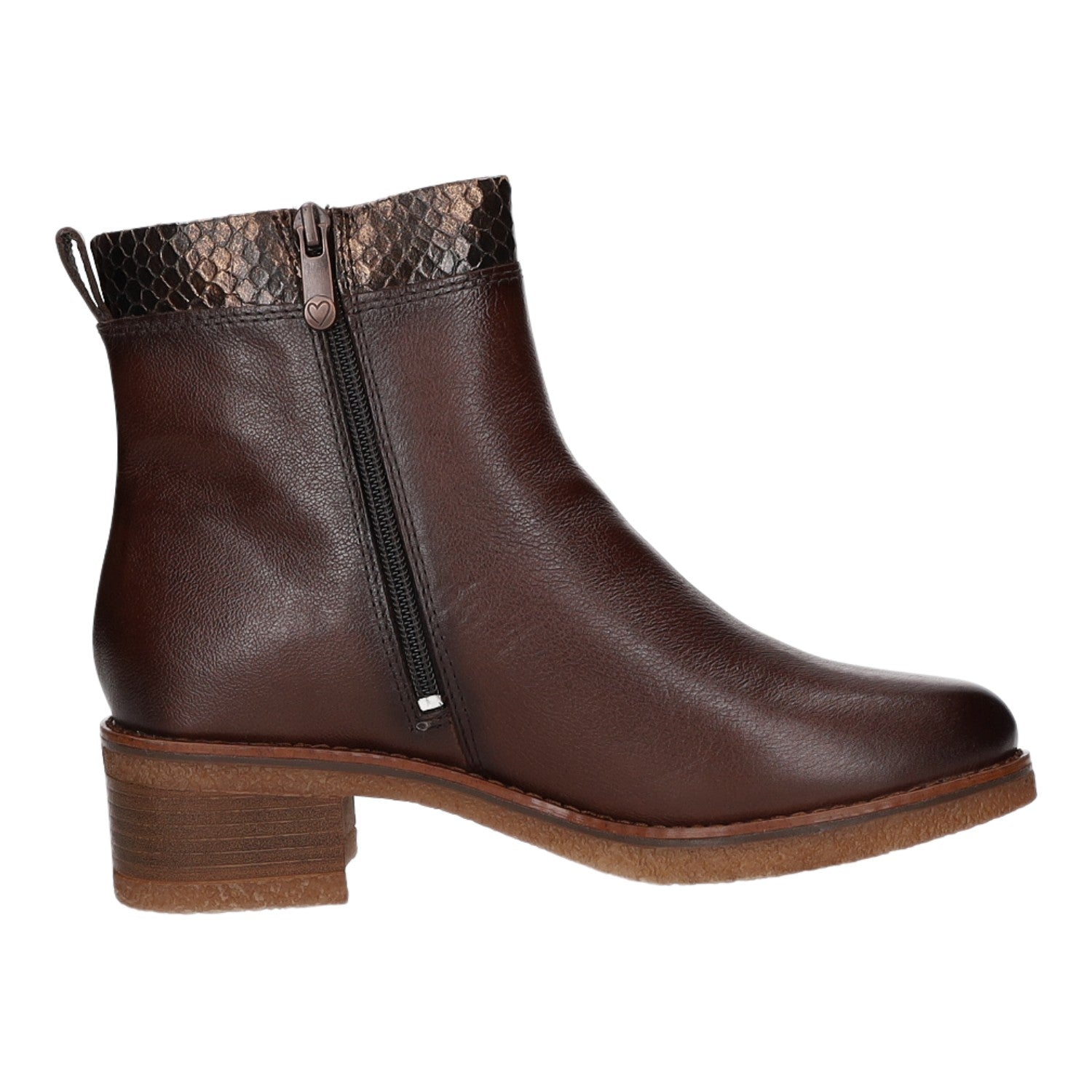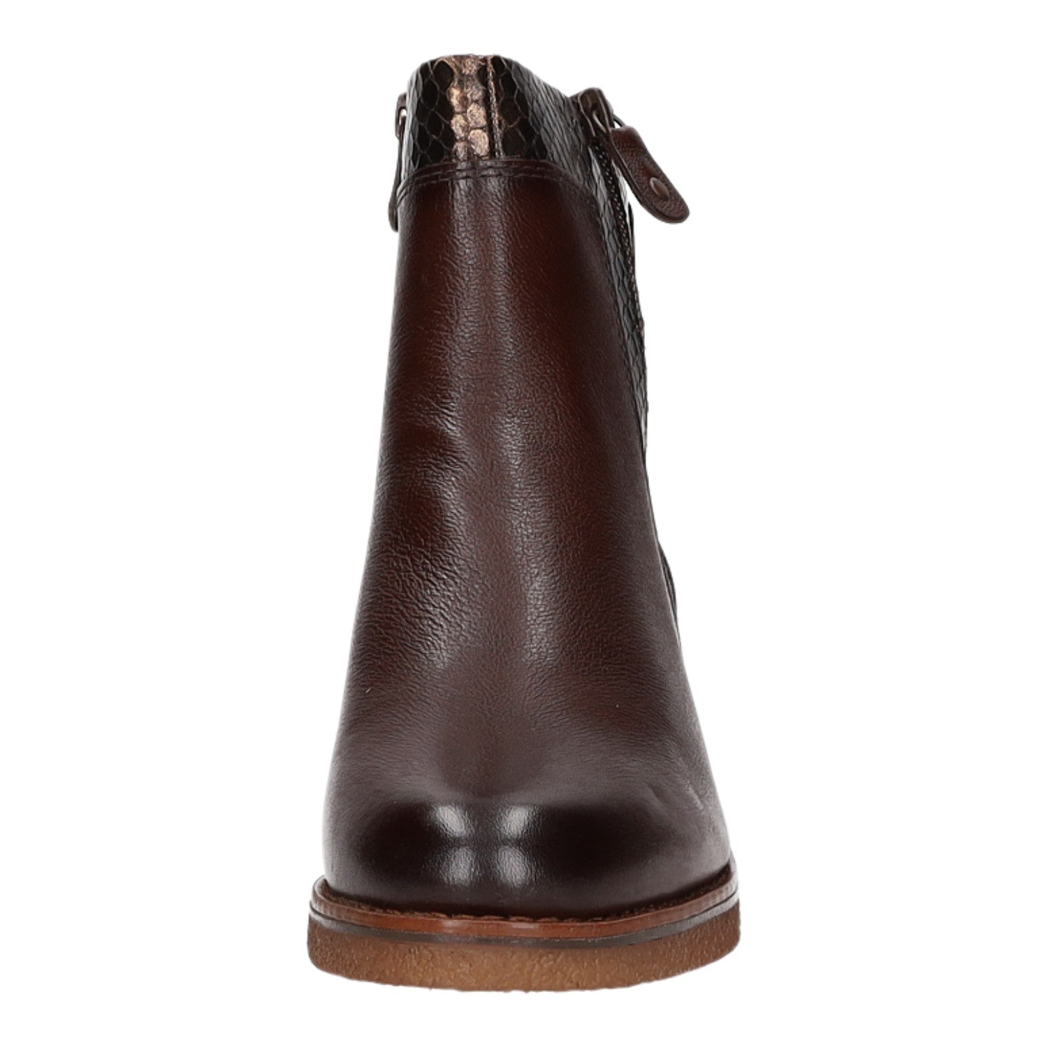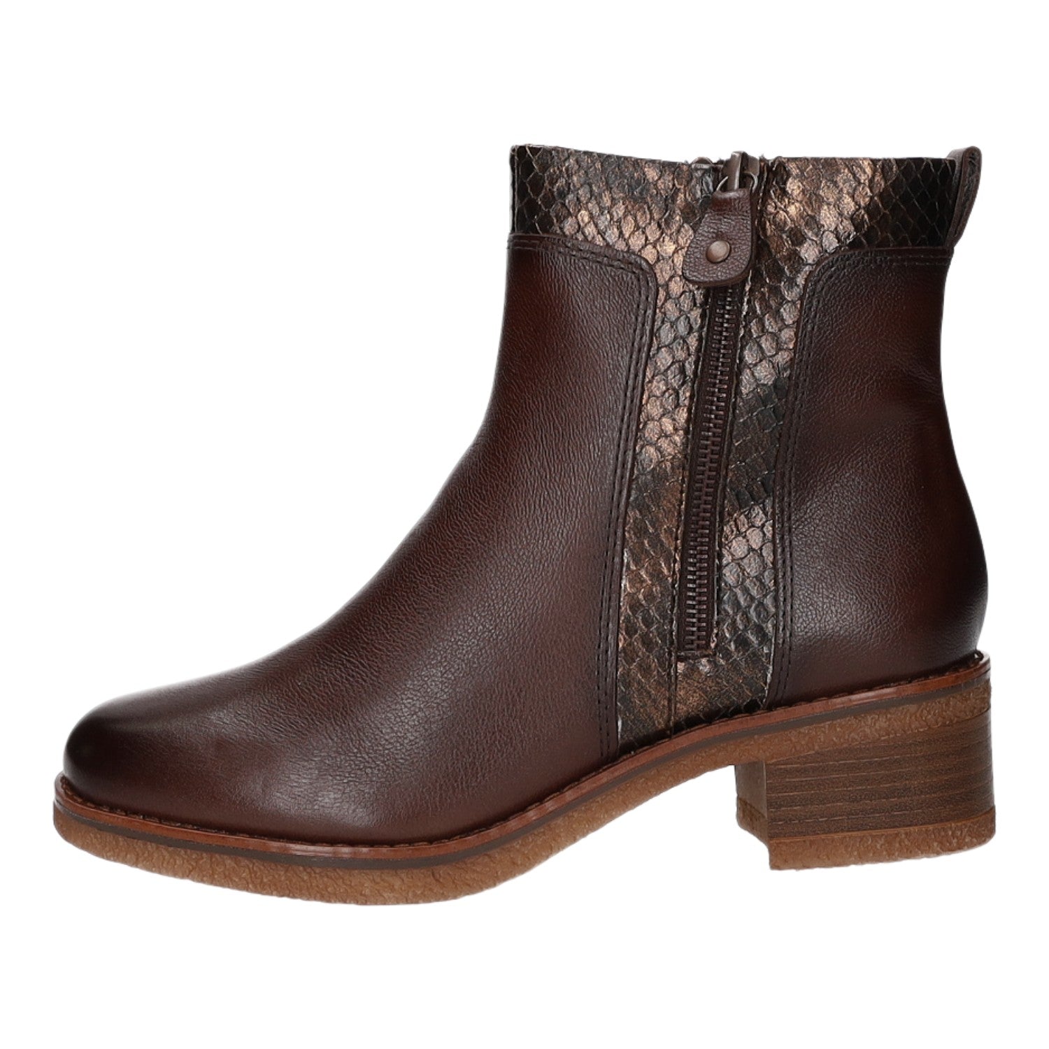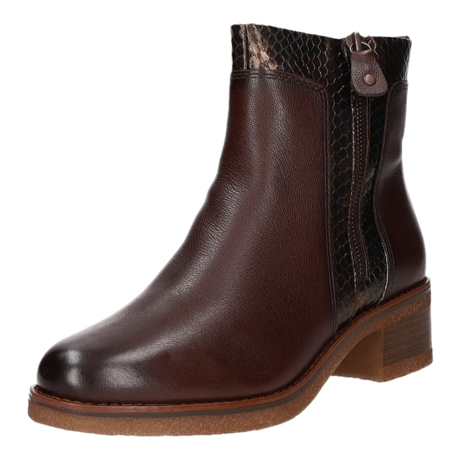 Gefertigt aus wunderschönem dunkelbraunem Glattleder und Textil in Schlangenlederoptik.