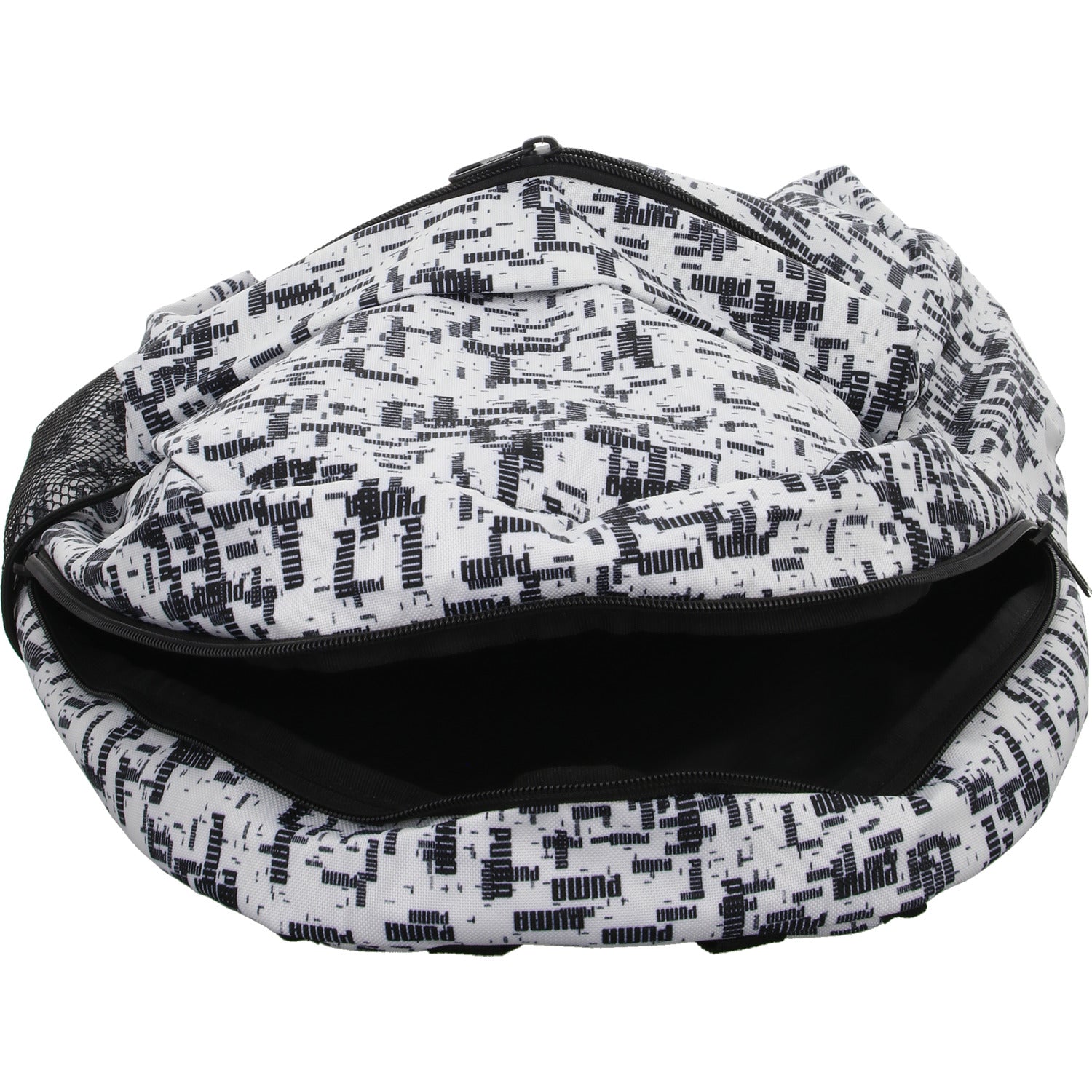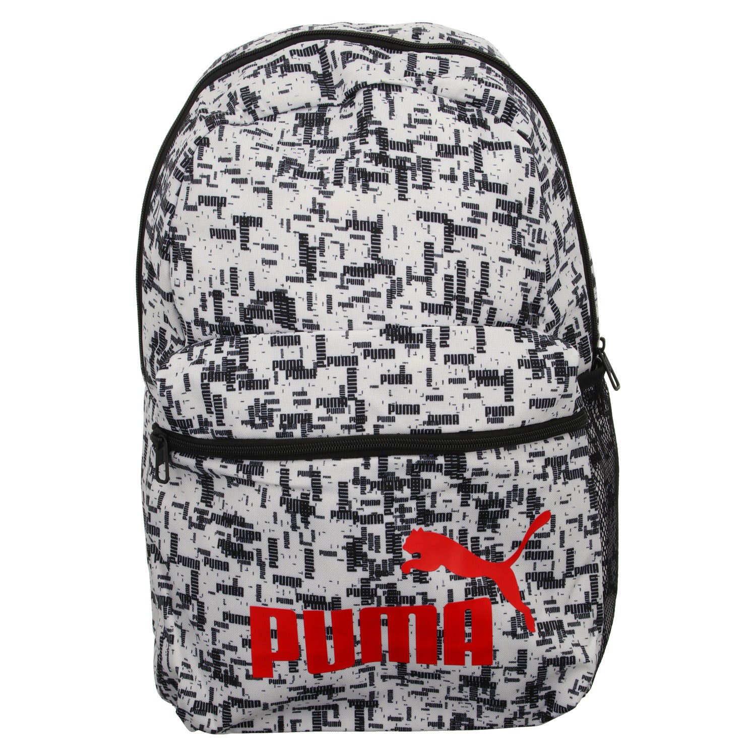 Auf der Vorderseite ist ein Reissverschlussfach und seitlich ist ein Netz.