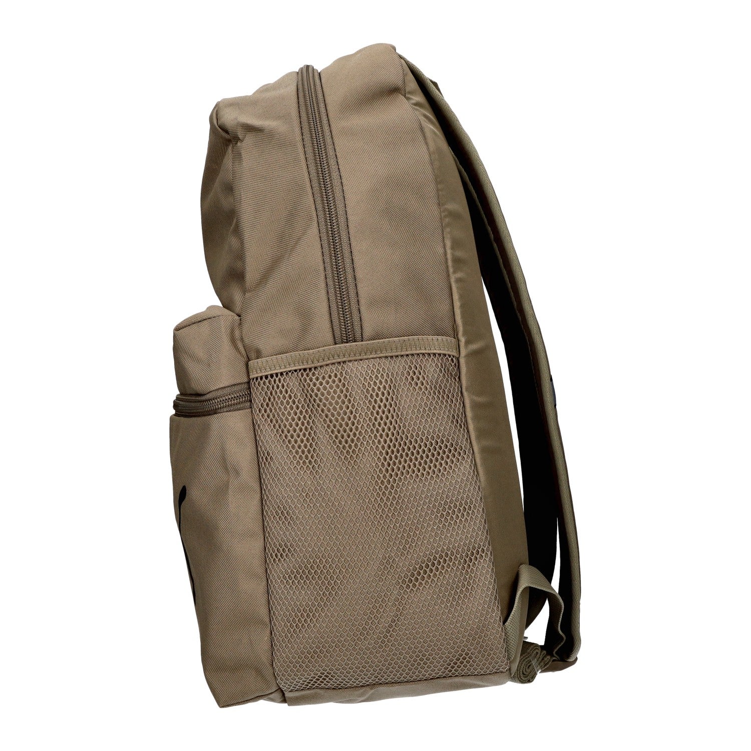 Auf der Vorderseite ist ein Reissverschlussfach und seitlich befindet sich ein Netz.