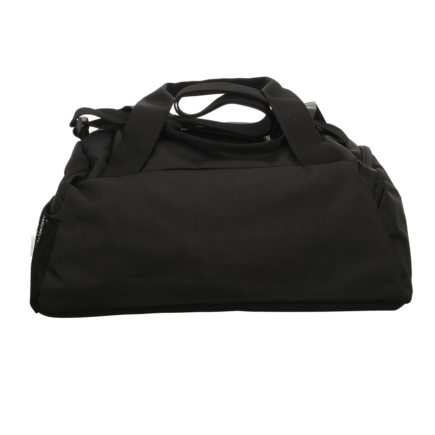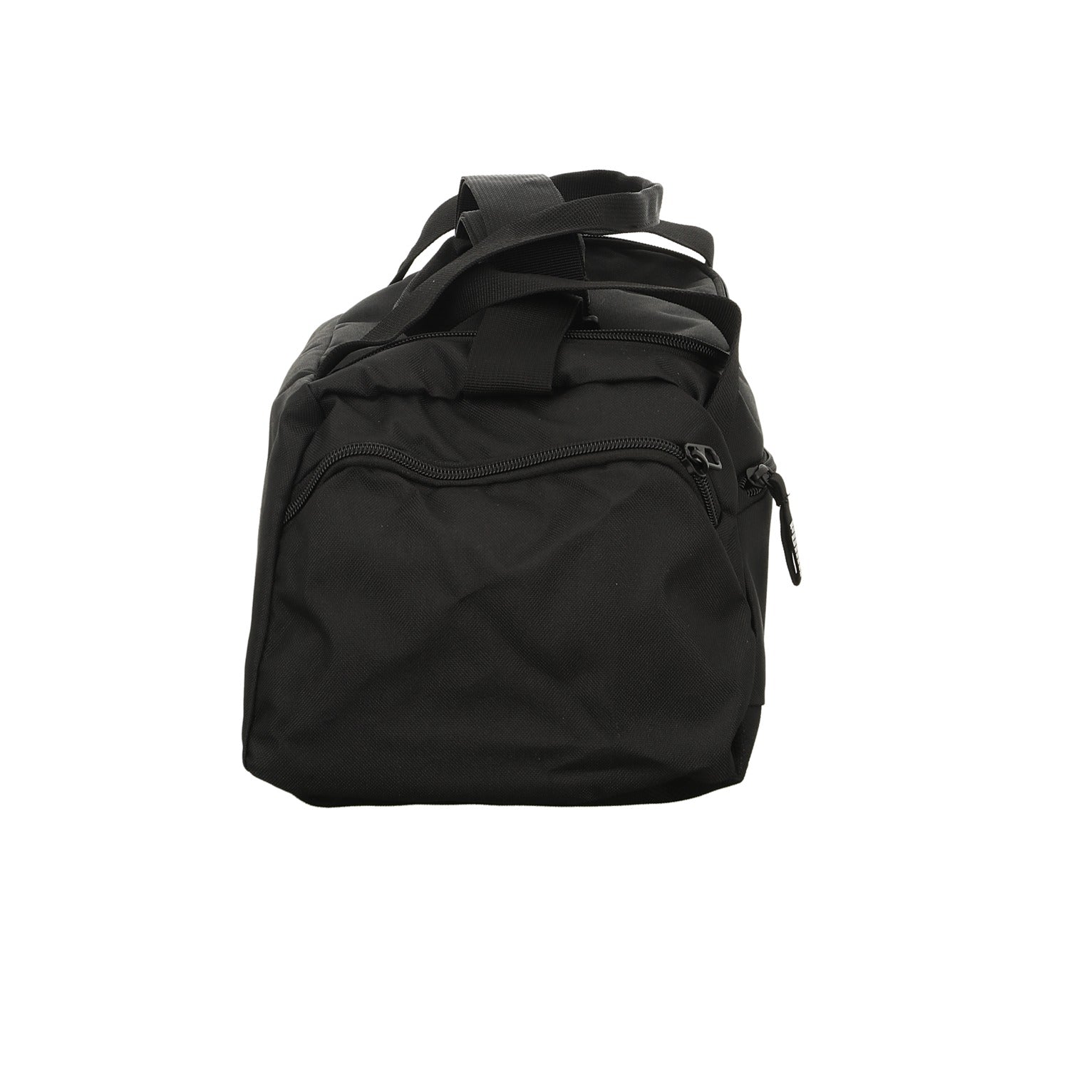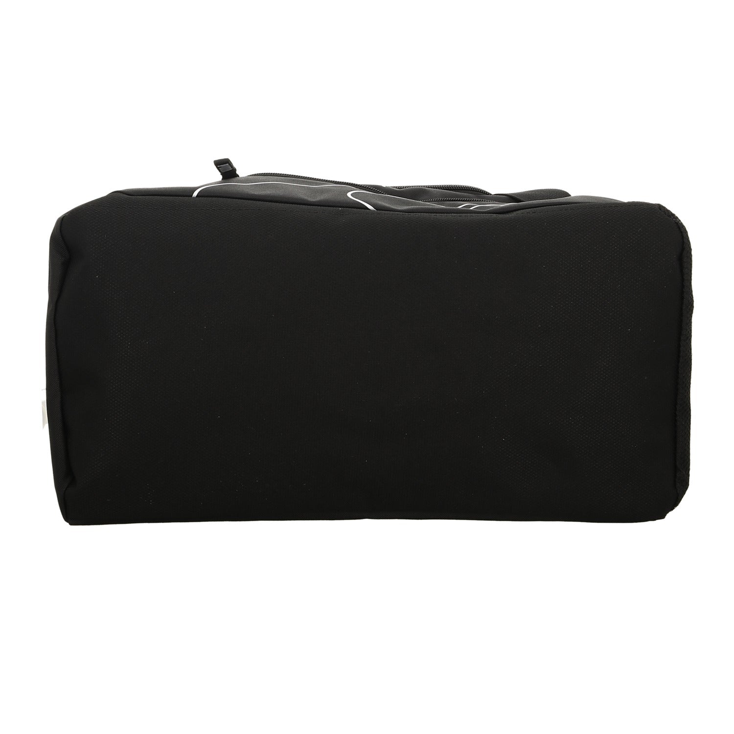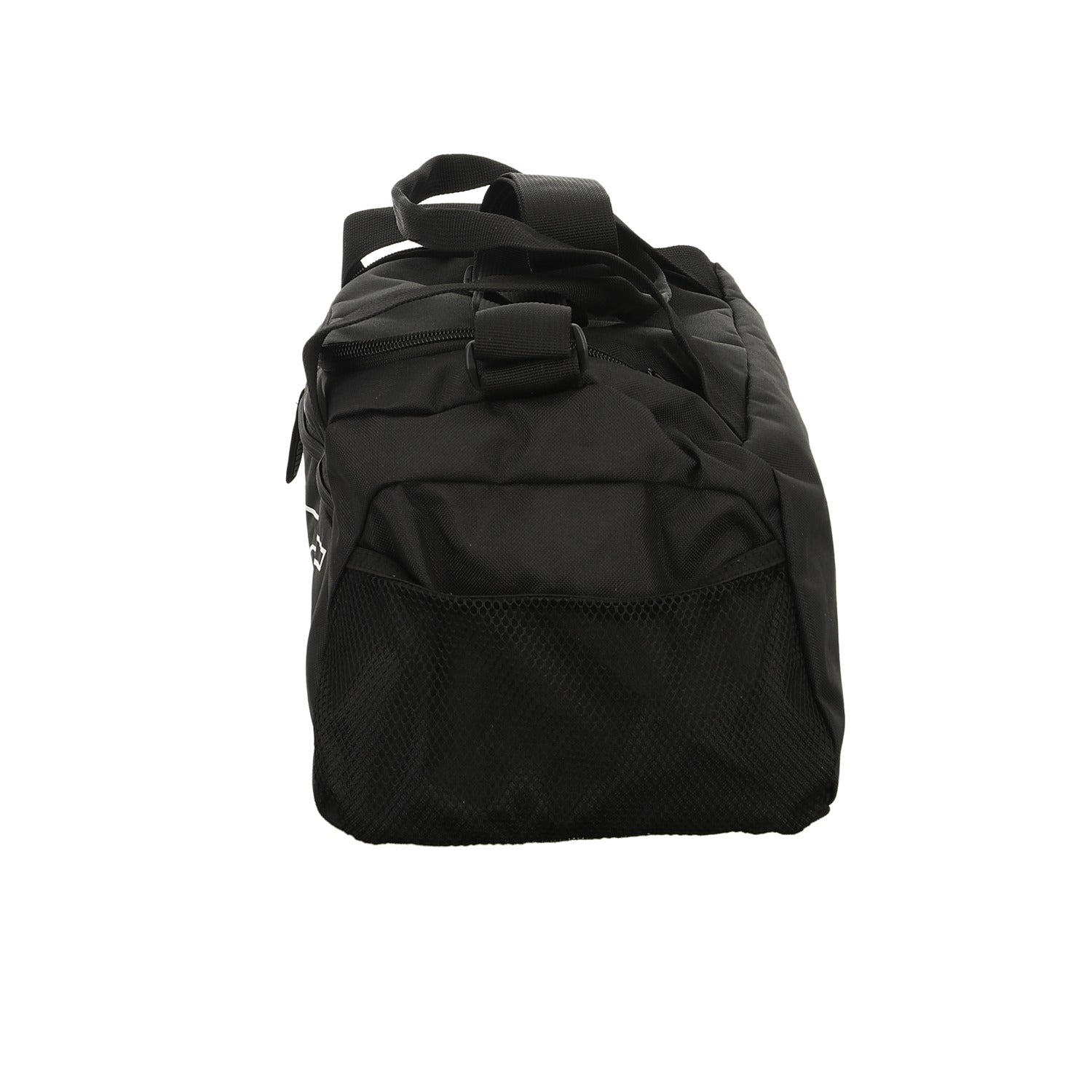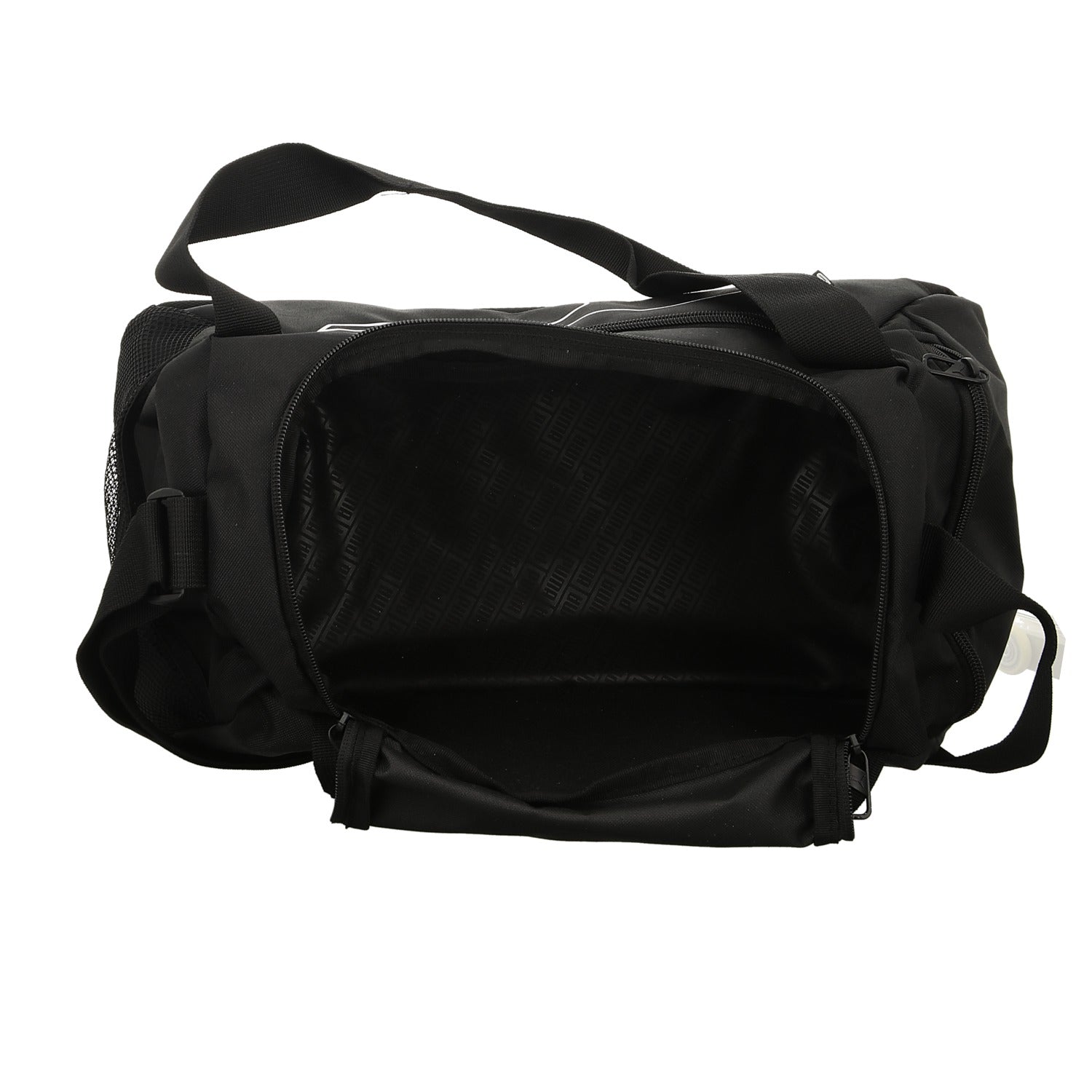 Gefertigt aus schwarzem Textil mit weißem Logo.