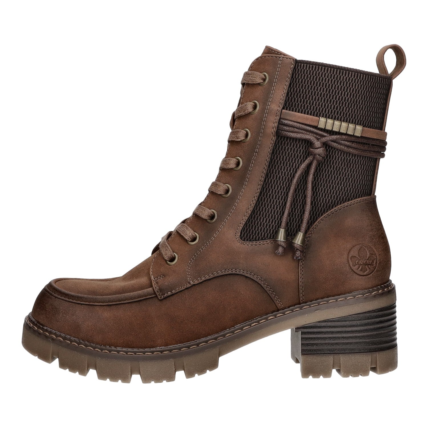 Die um den Schaft geführten Senkel geben dem Schuh einen besonderen Touch. RiekerAntistress-Eigenschaften: Schuhe sind leichter, flexibler, bieten mehr Platz und Schockabsorptionsfunktion.
