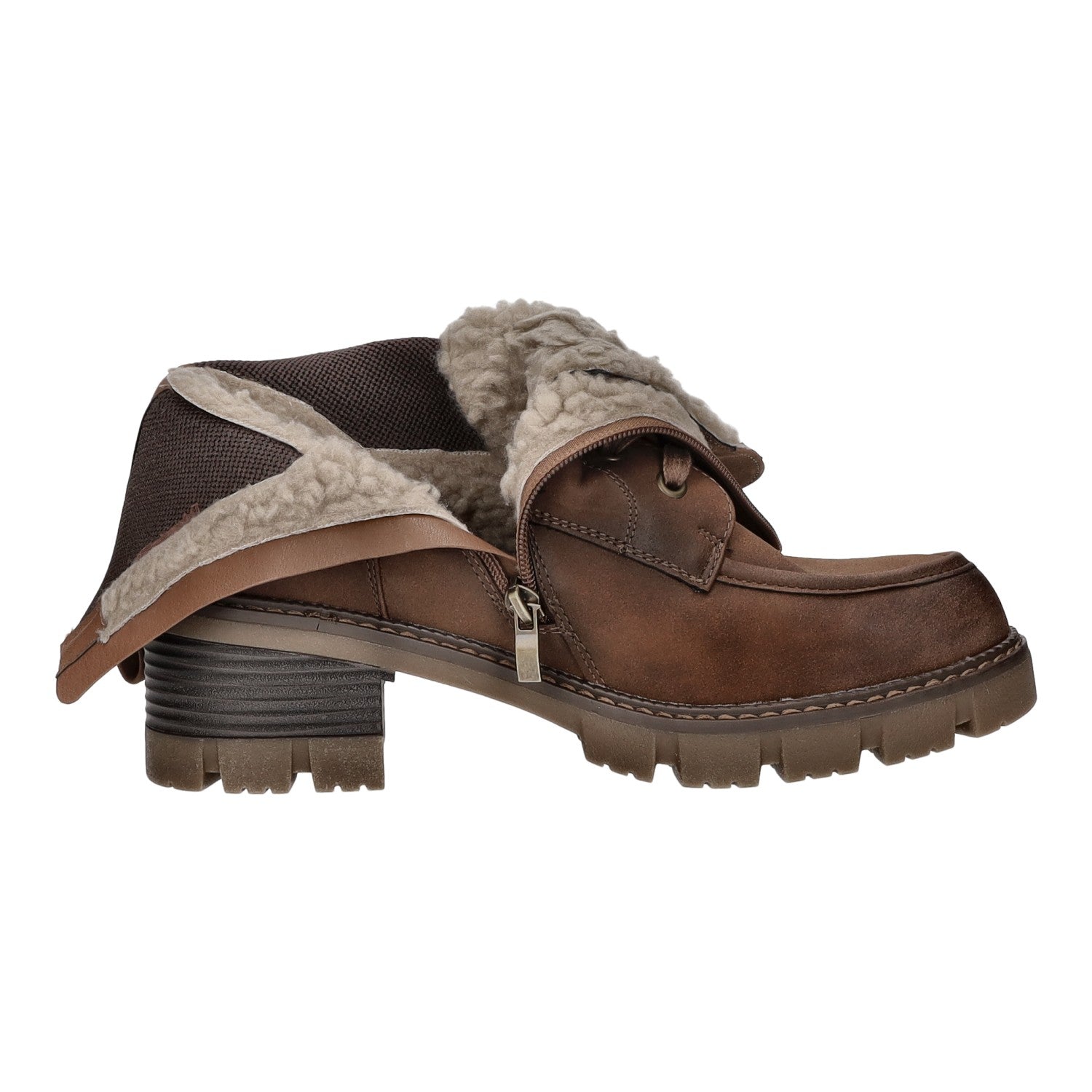 Das Futtermaterial besteht aus einem kurzen sehr weichen Kunstfell und die Decksohle aus Textil.