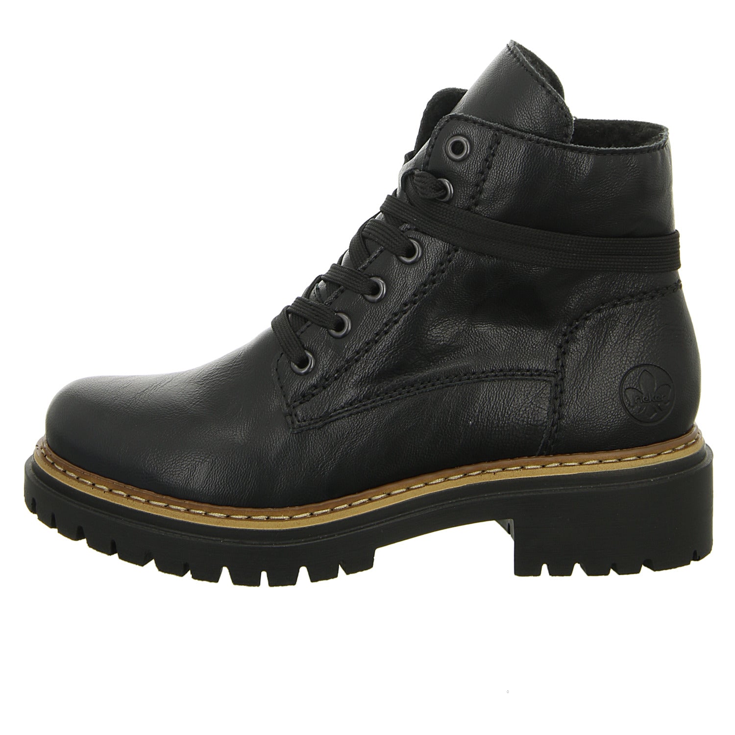 Die um den Schaft geführten Senkel geben dem Schuh einen besonderen Touch. RiekerAntistress-Eigenschaften: Schuhe sind leichter, flexibler, bieten mehr Platz und Schockabsorptionsfunktion.