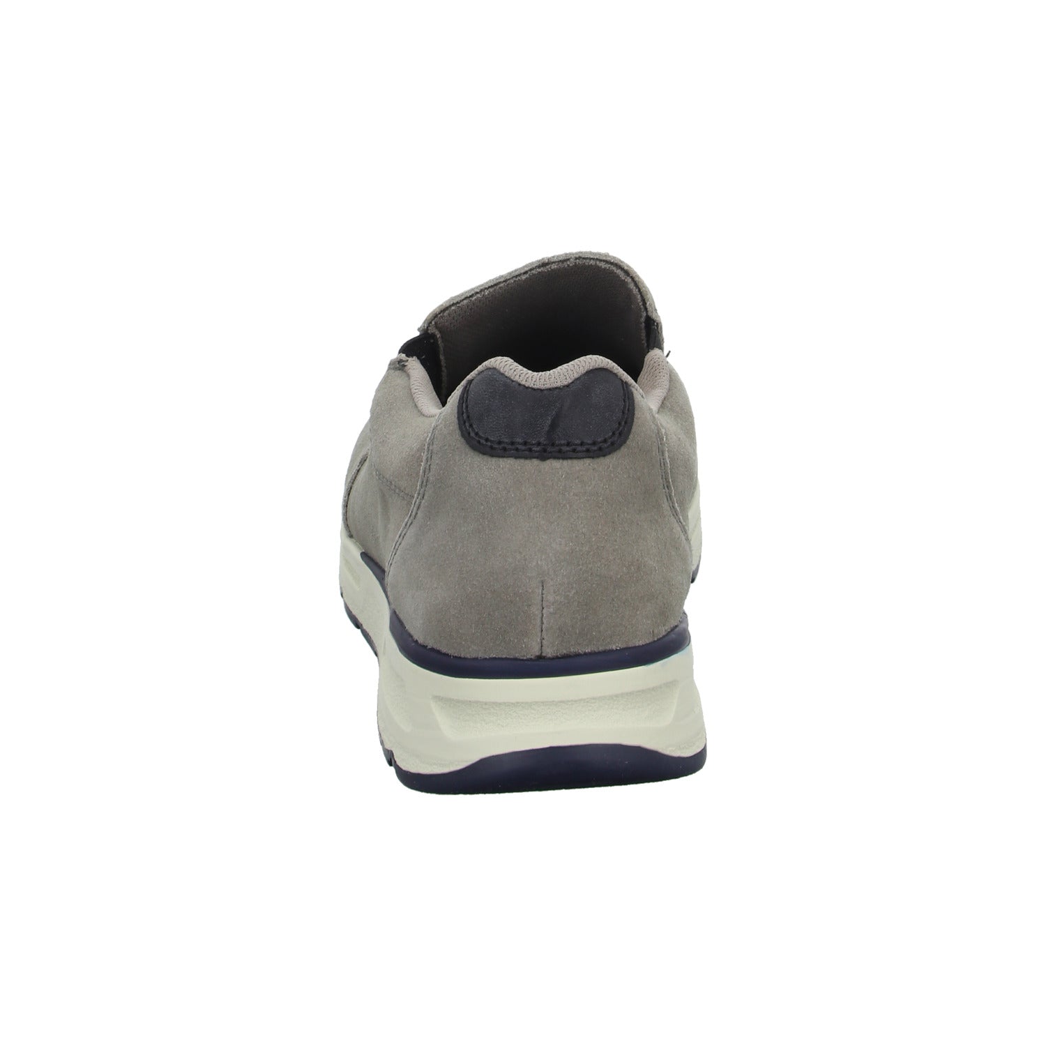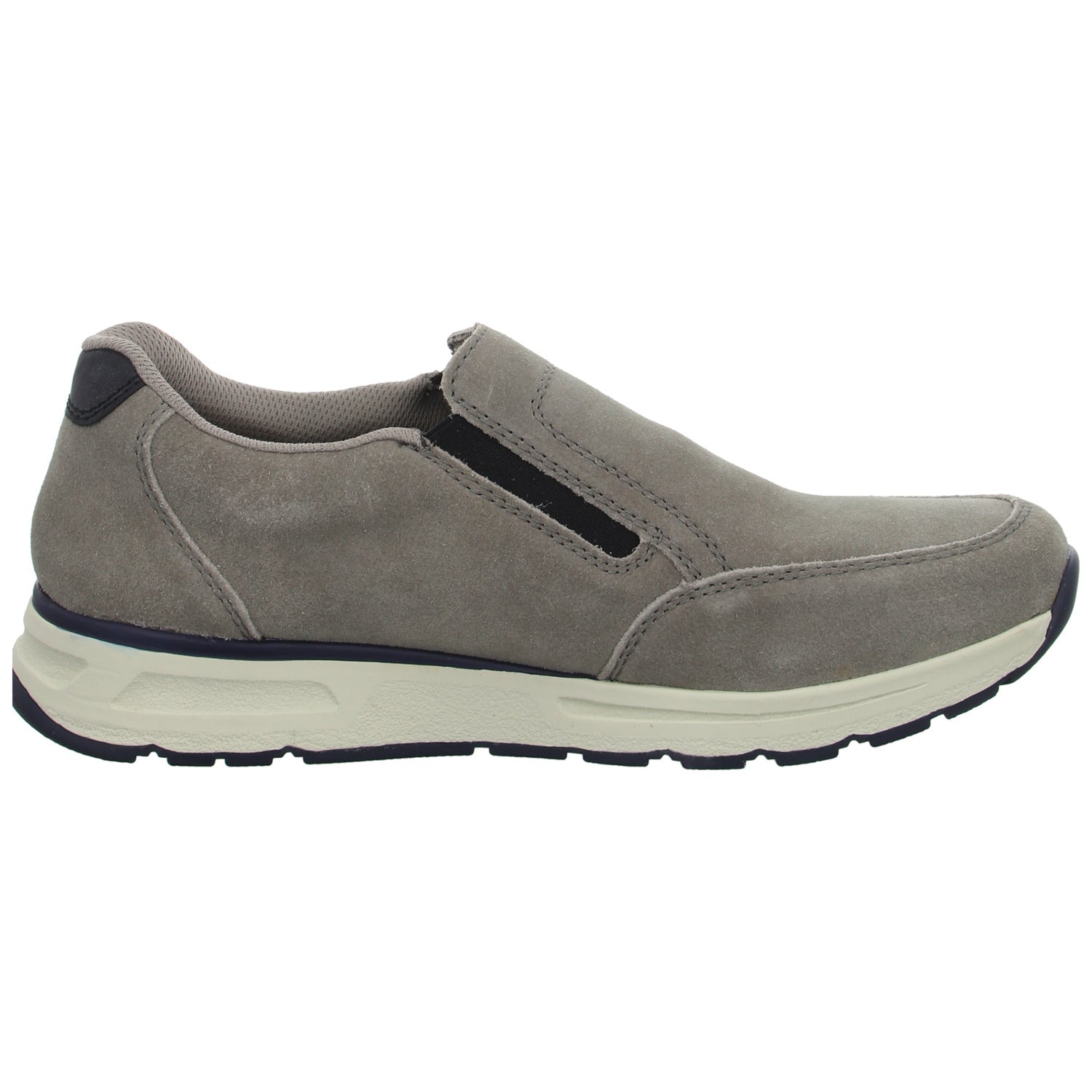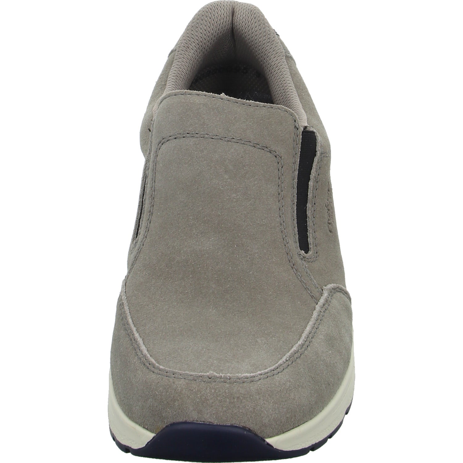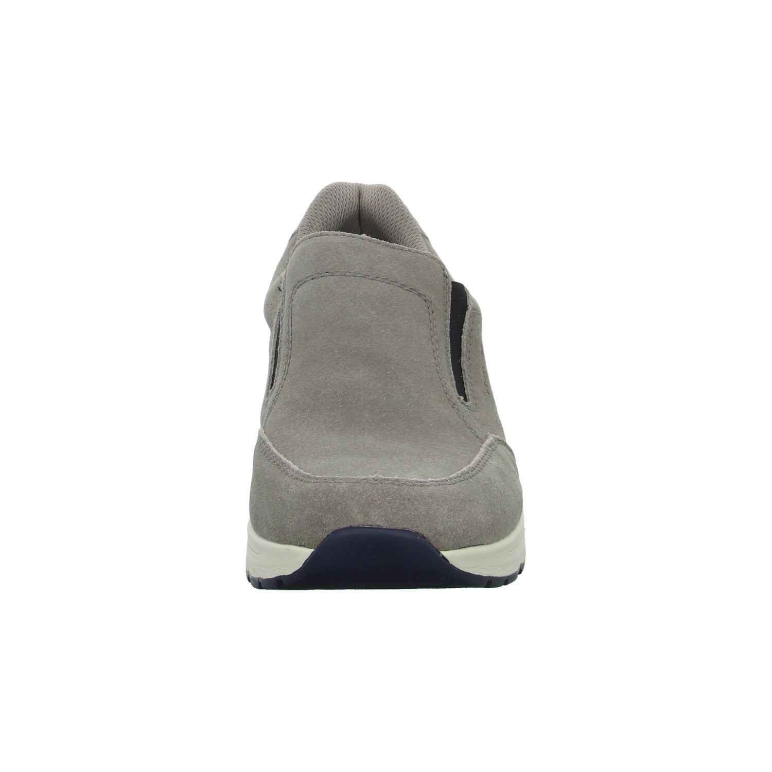 Das Obermaterial besteht aus hochwertigem mittel grauem Veloursleder.
