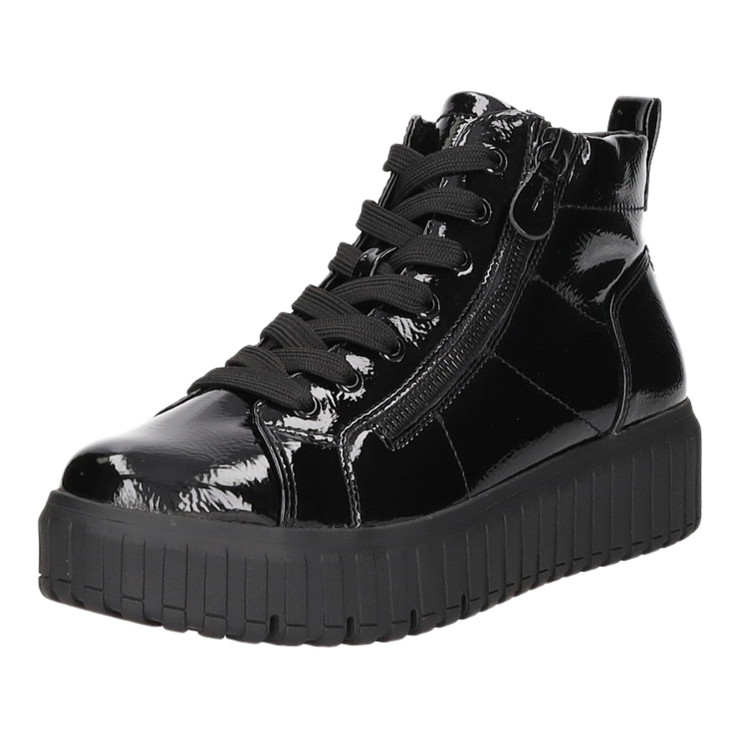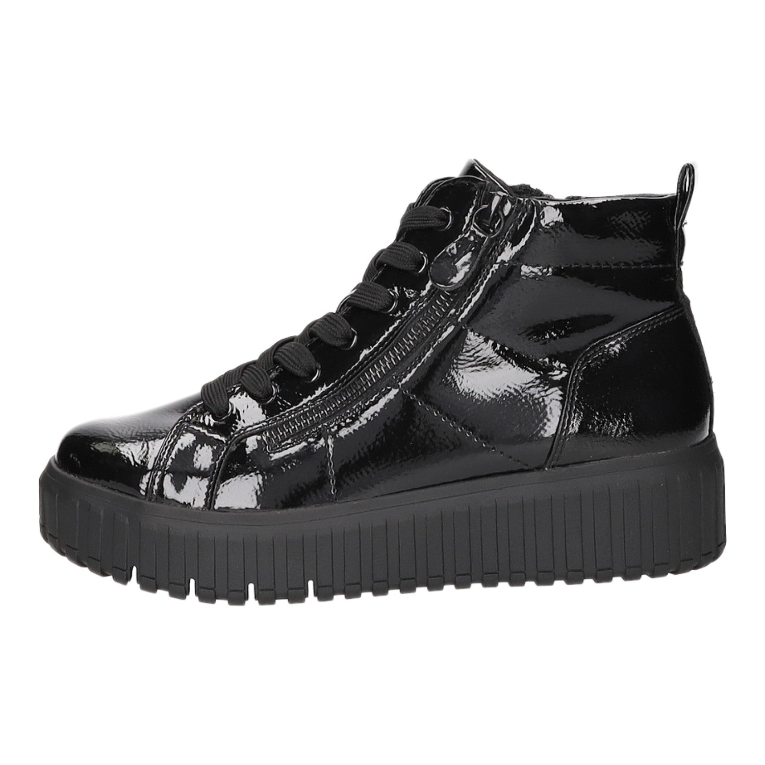 Dieses Obermaterial ist ein echtes Highlight! Gefertigt aus schwarzem Kunstleder in Lackoptik.