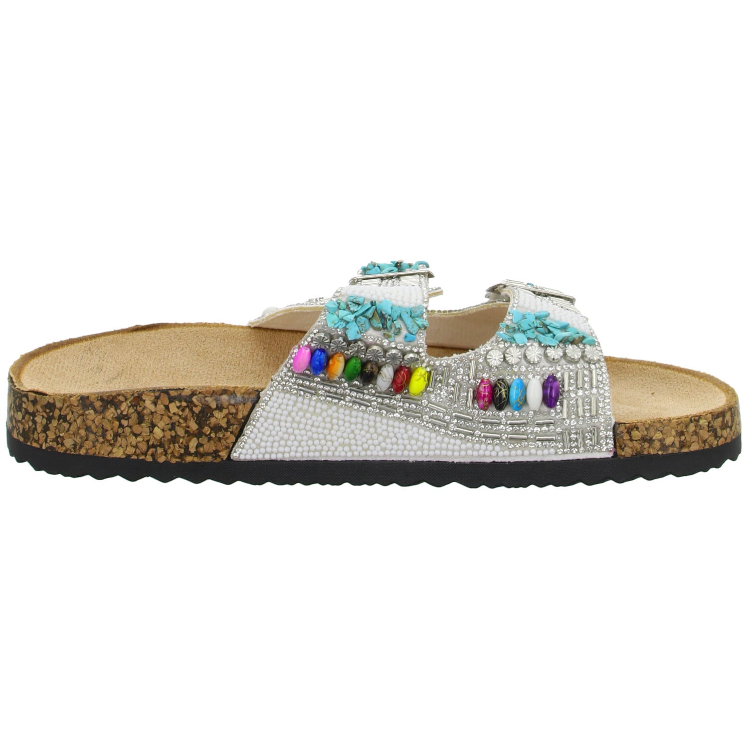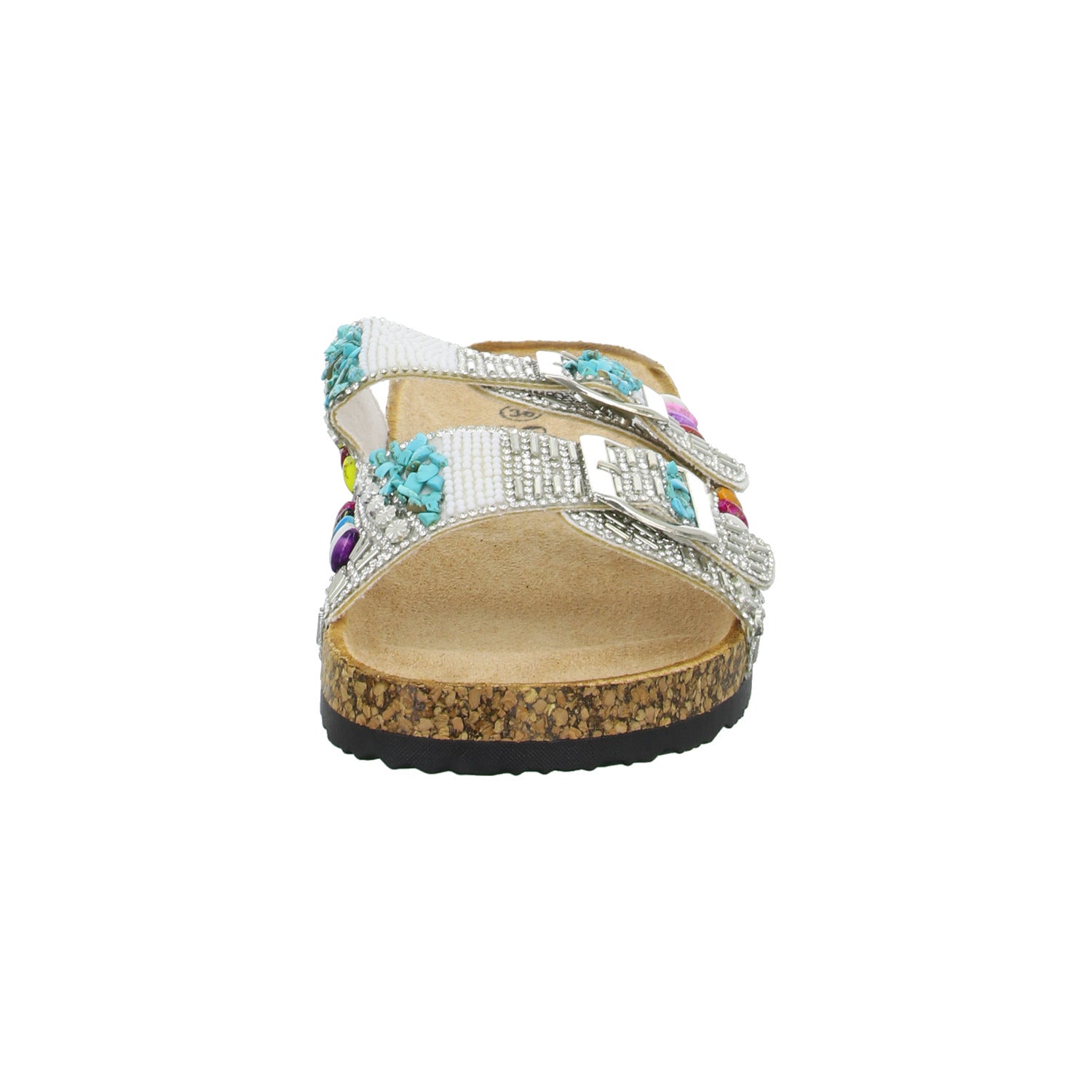 Als modisches Highlight ist der Schuh üppig mit Strasssteinen und Perlen besetzt.