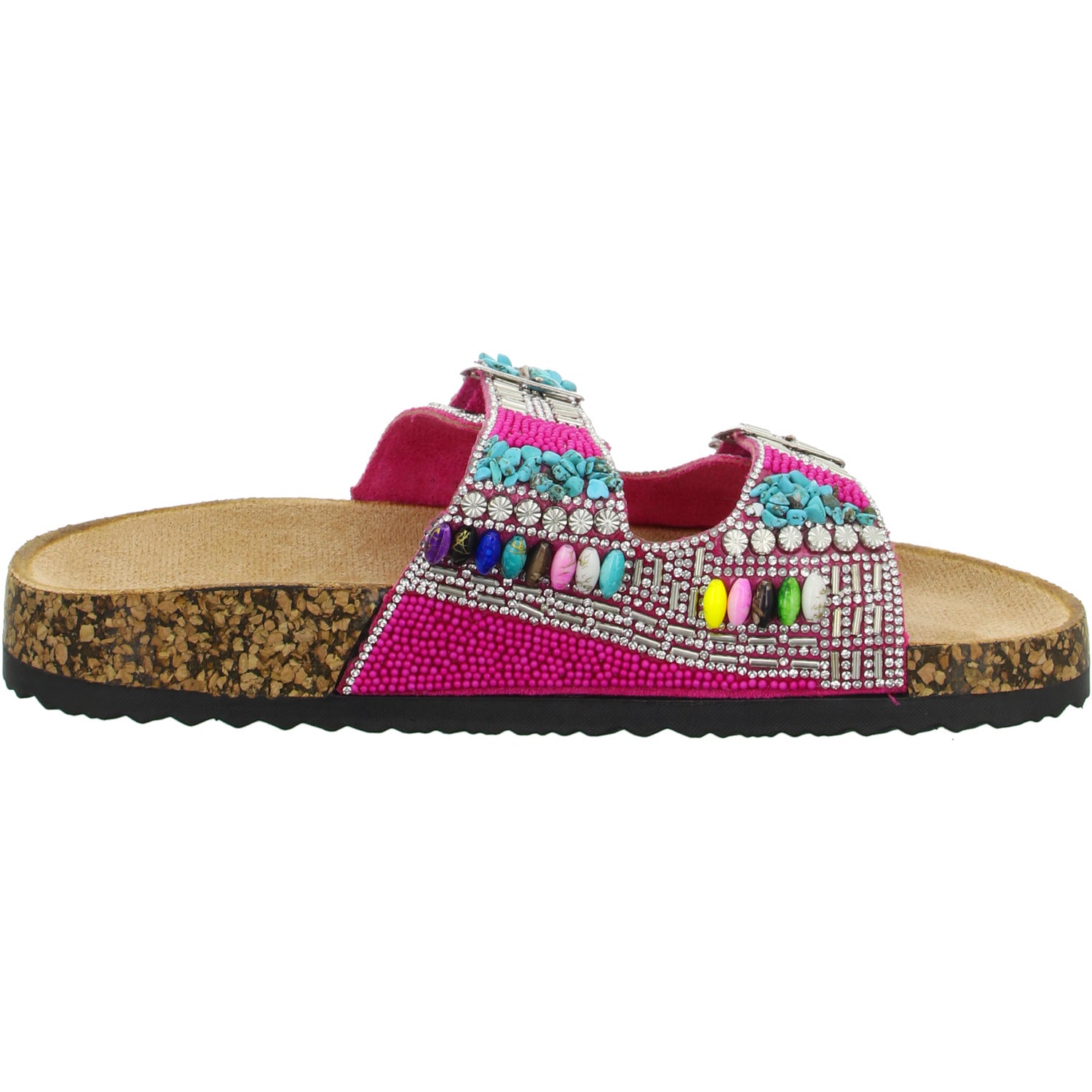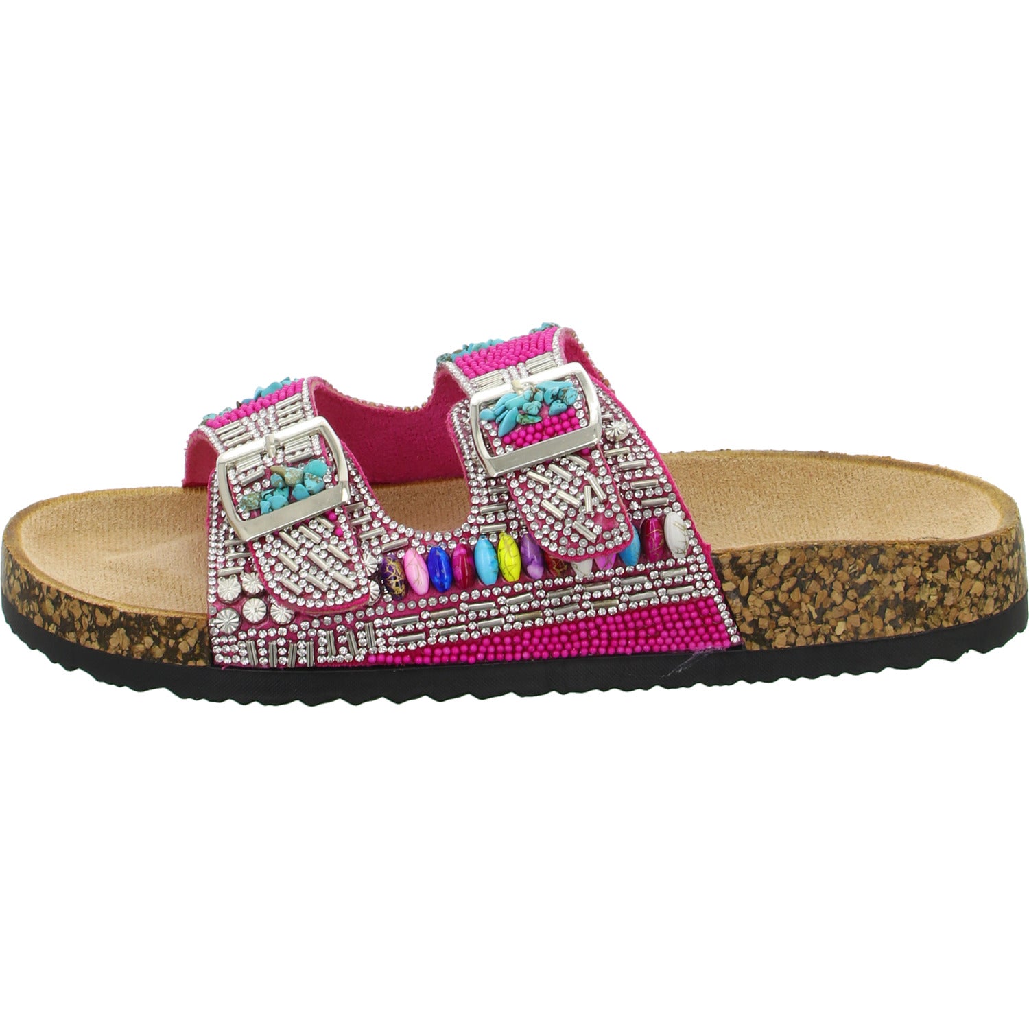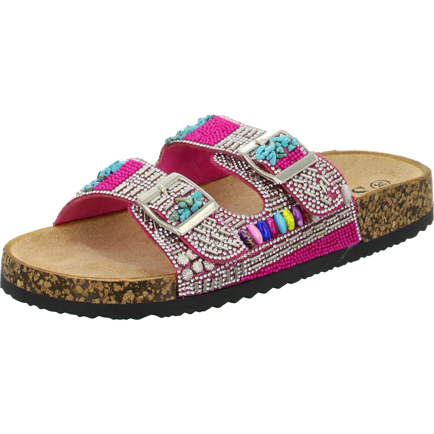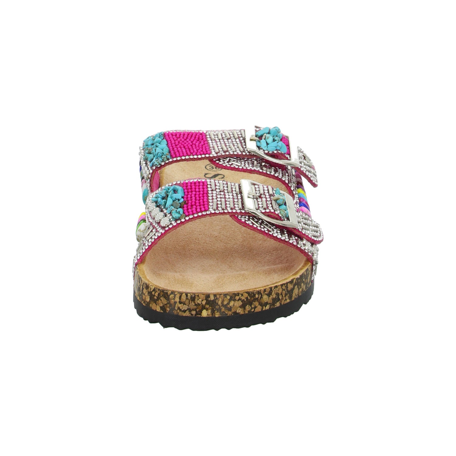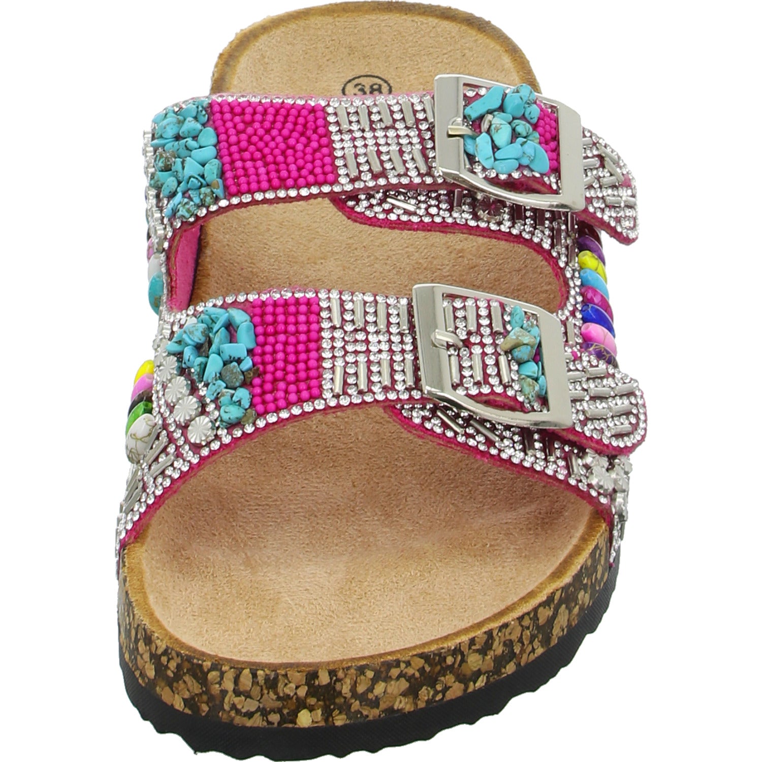 Als modisches Highlight ist der Schuh üppig mit Strass Steinen und Perlen besetzt.