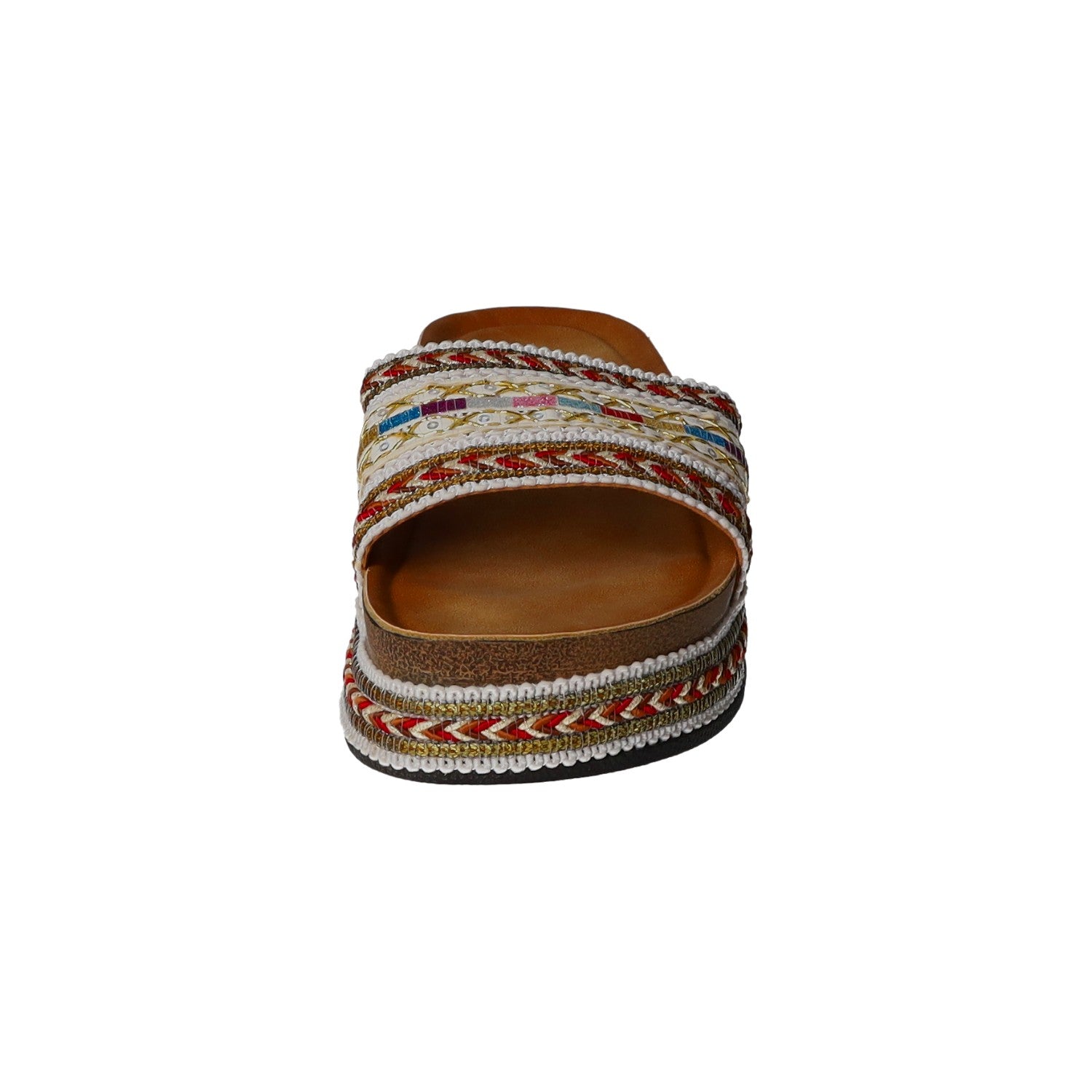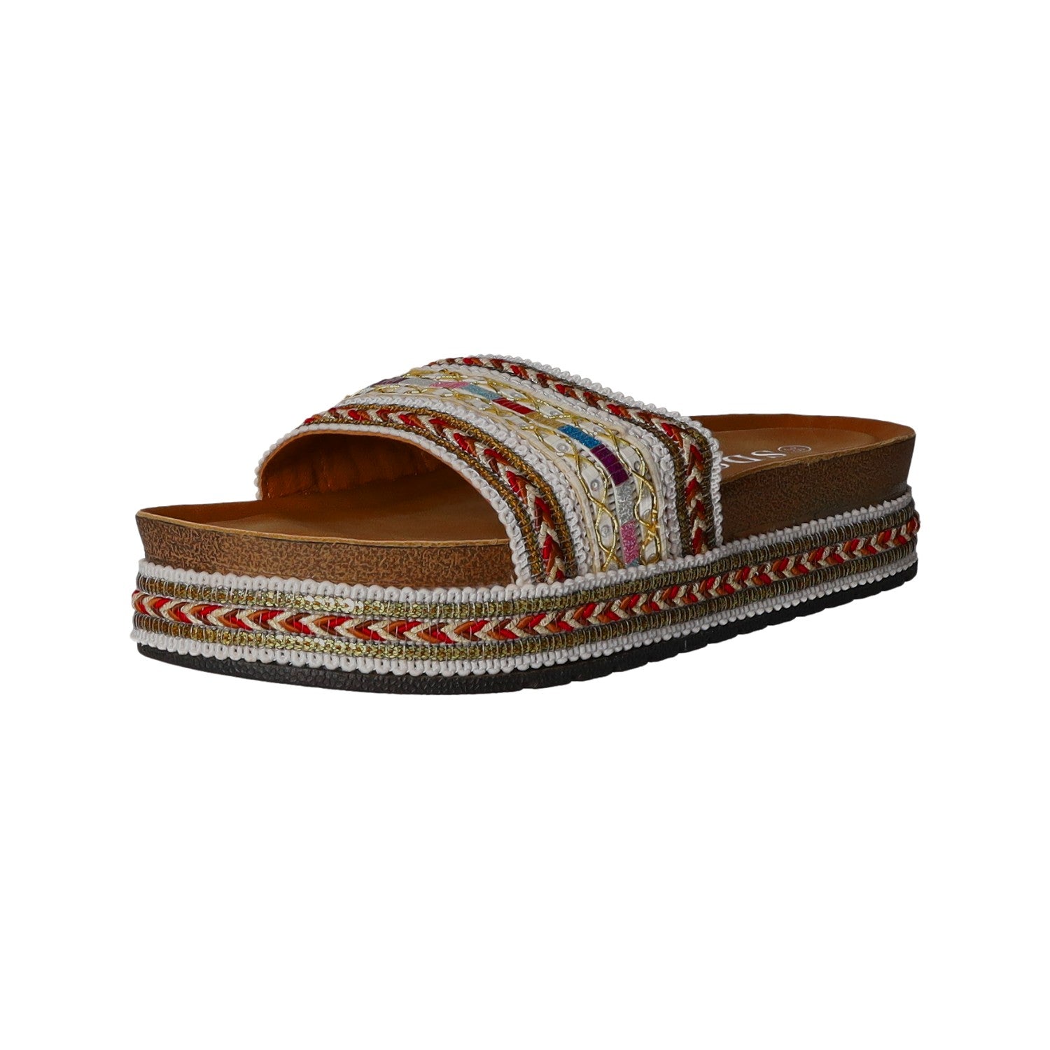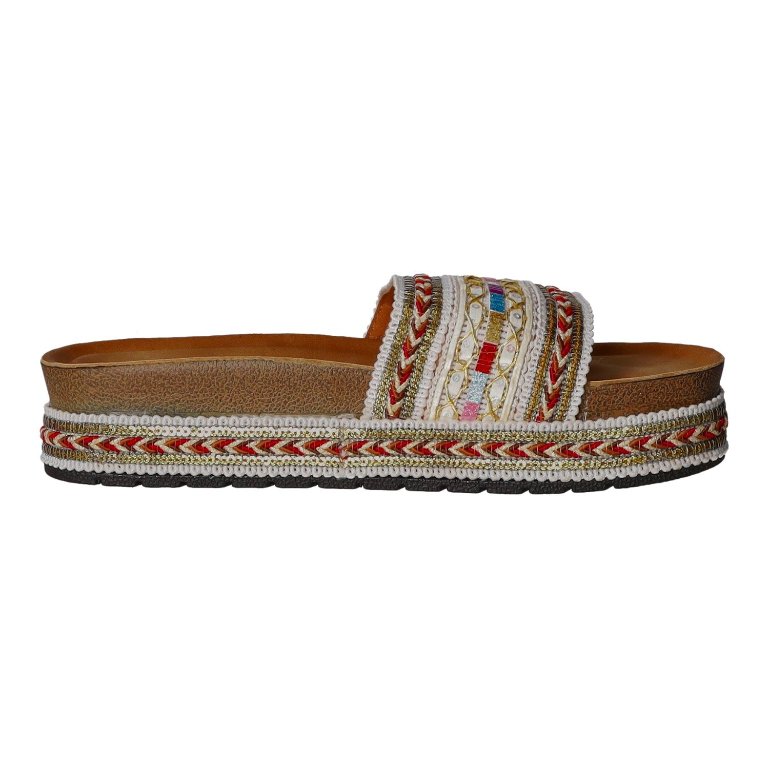 Die Plateausohle besteht aus Kunststoff.