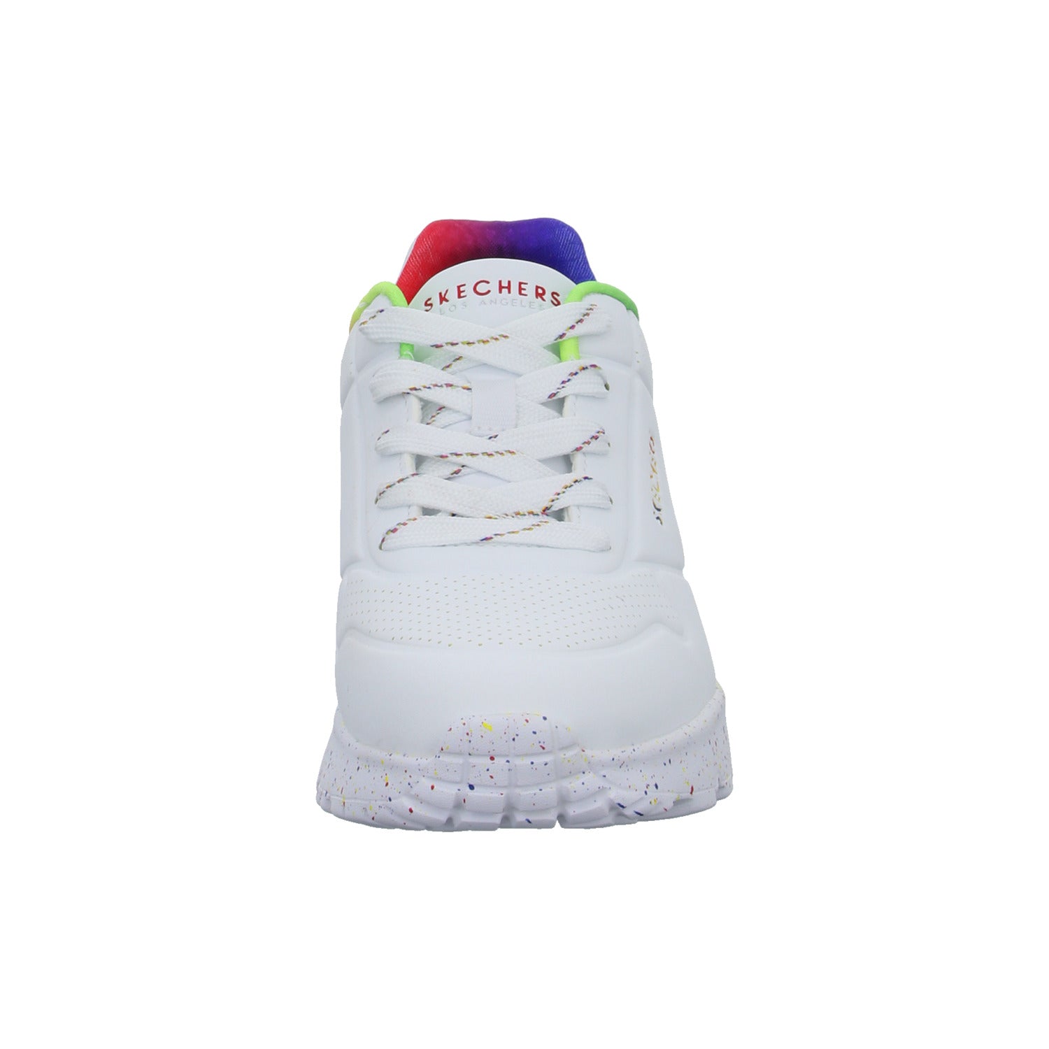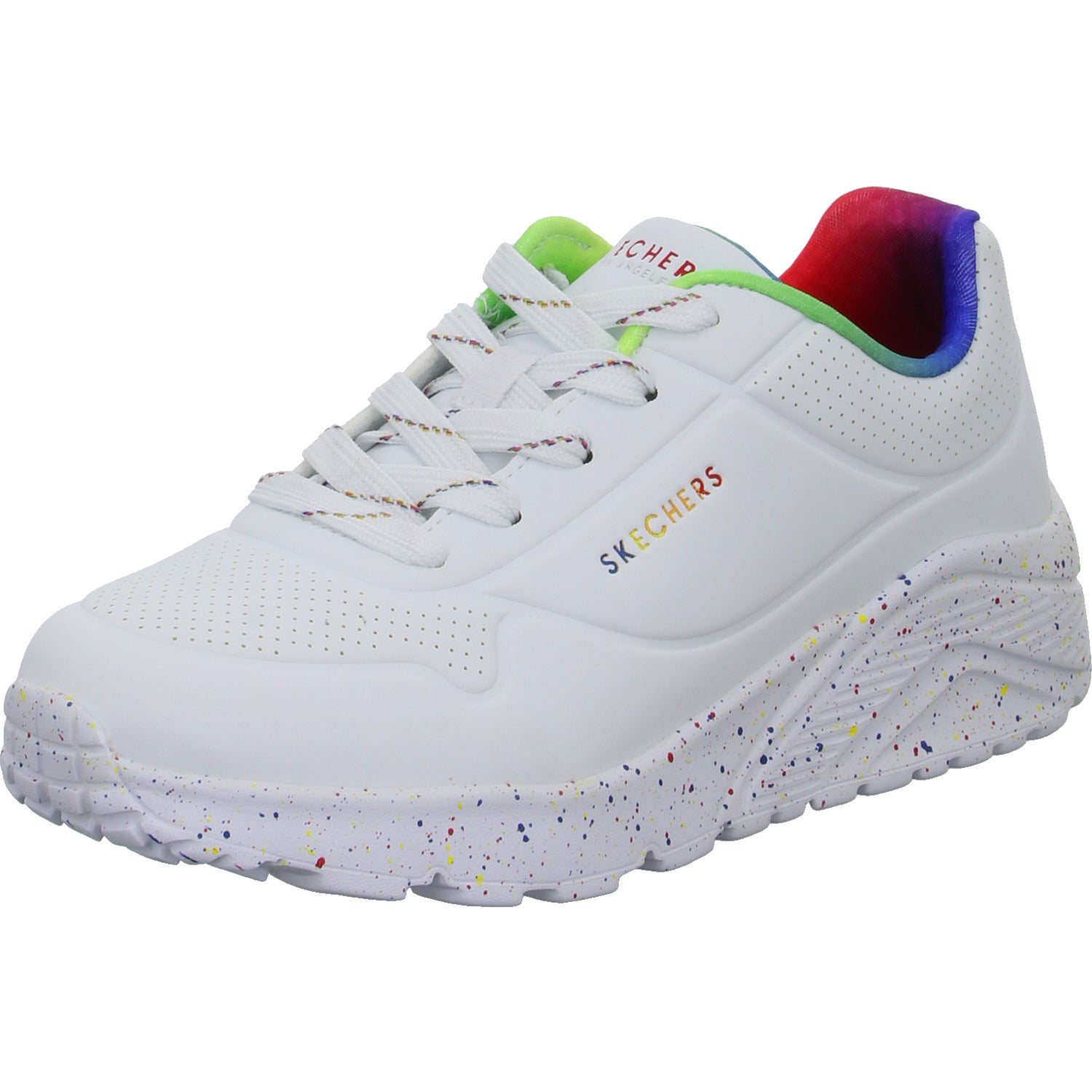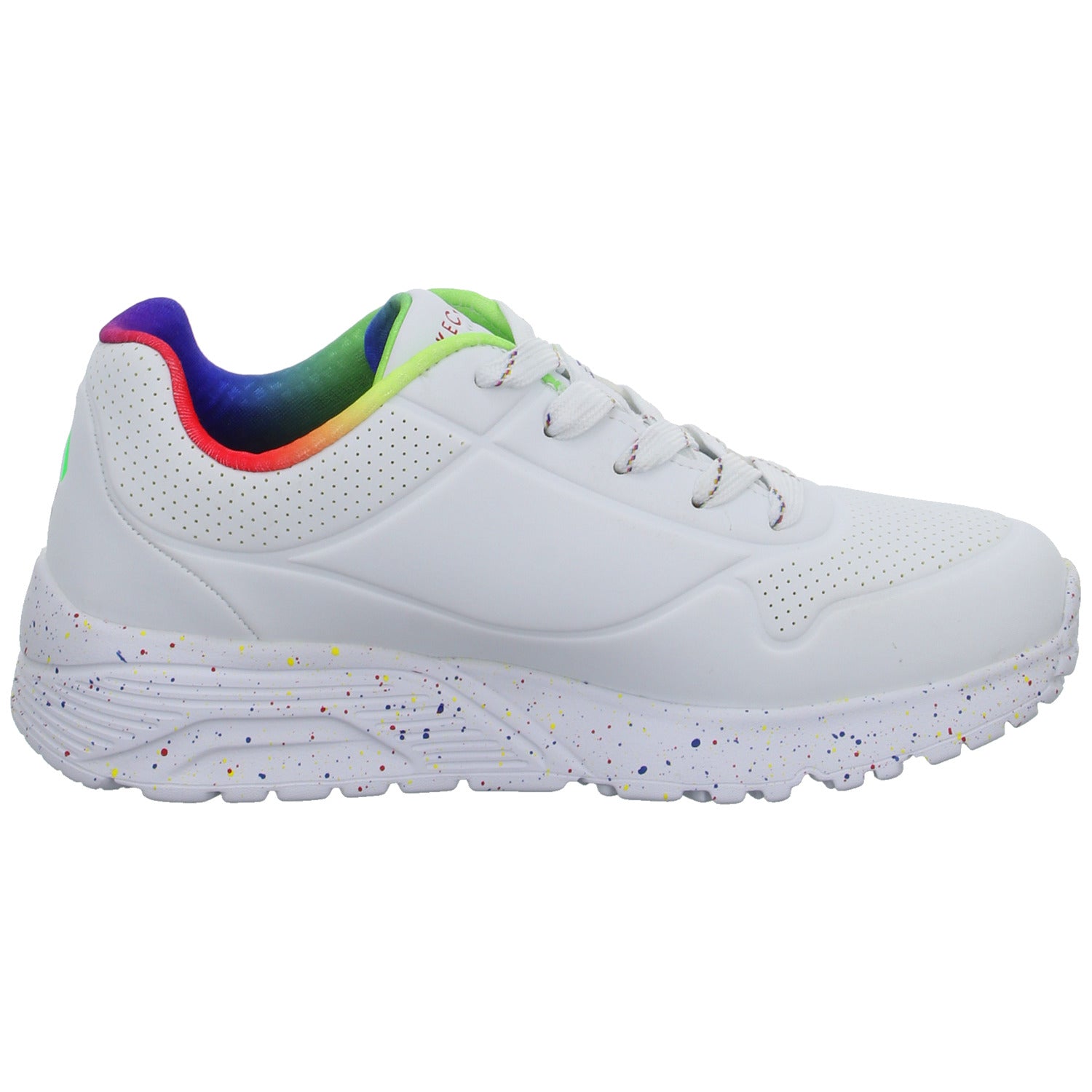 Das Obermaterial besteht aus hochwertigem, im Grundton weißem glattem Kunstleder.