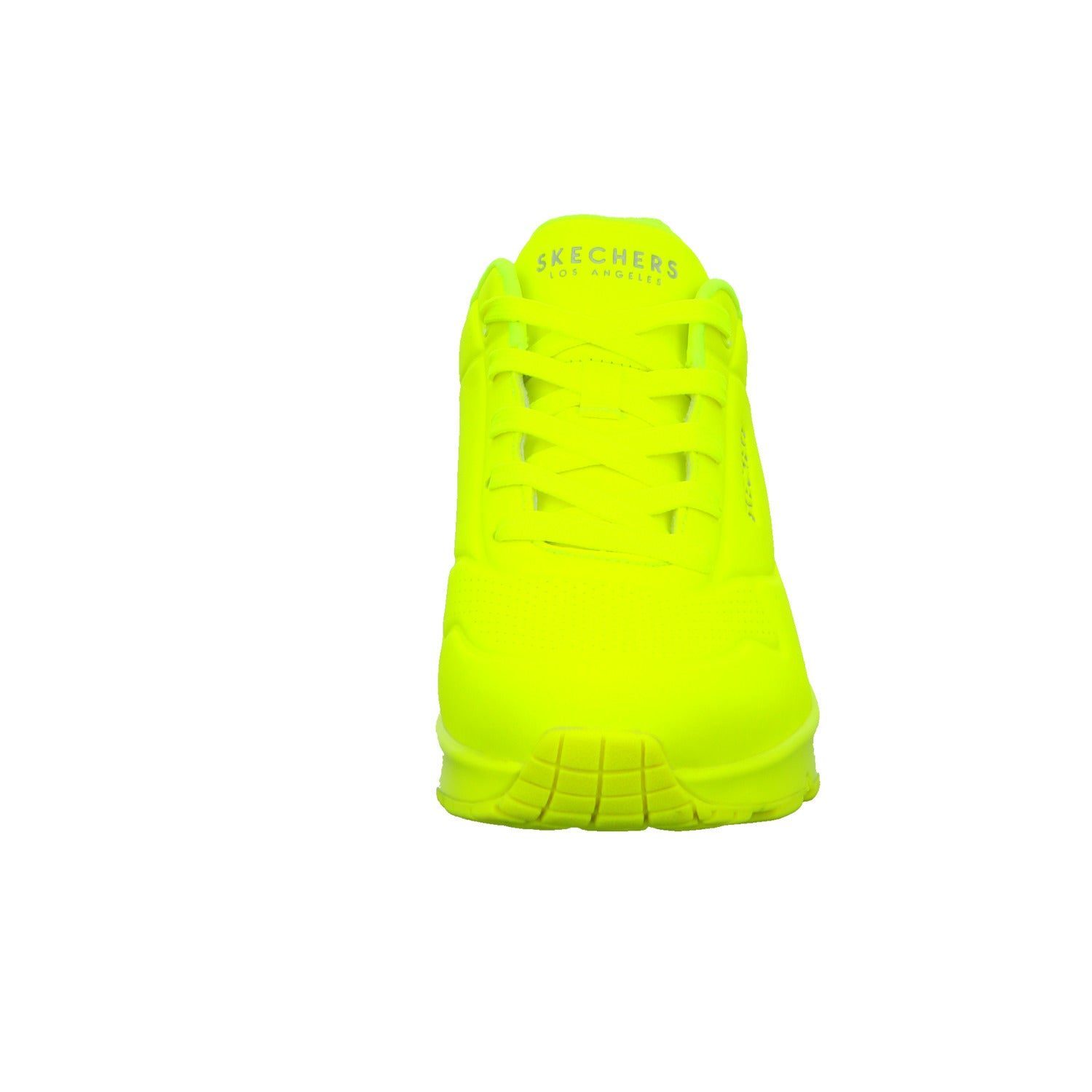 Gefertigt aus auffälligem, neongelbem glattem Kunstleder.