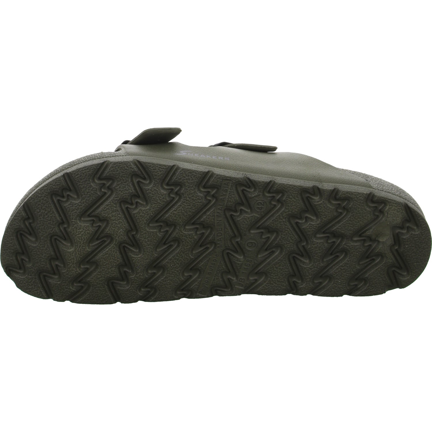 Der Schuh wurde aus dunkel grünem Synthetik gefertigt.