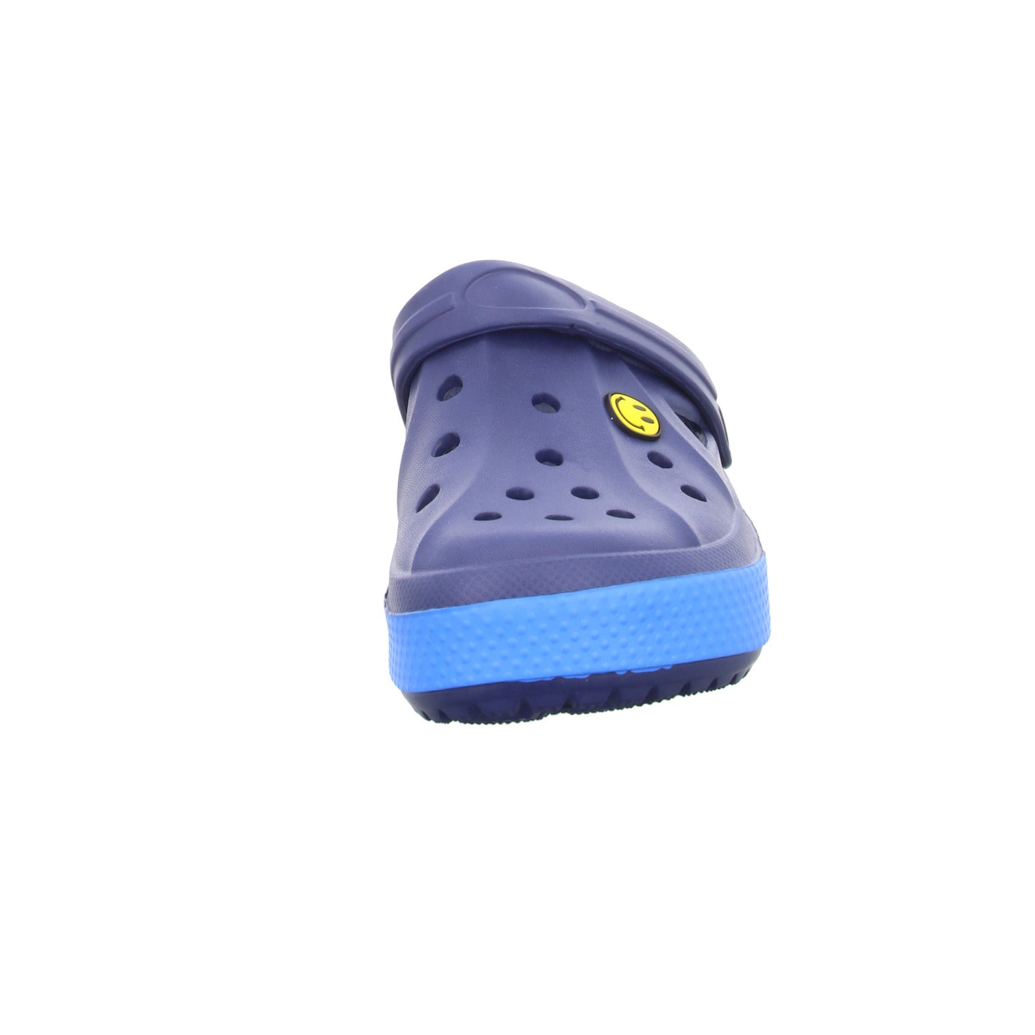 Der Schuh ist mit einem Smiley verziert.