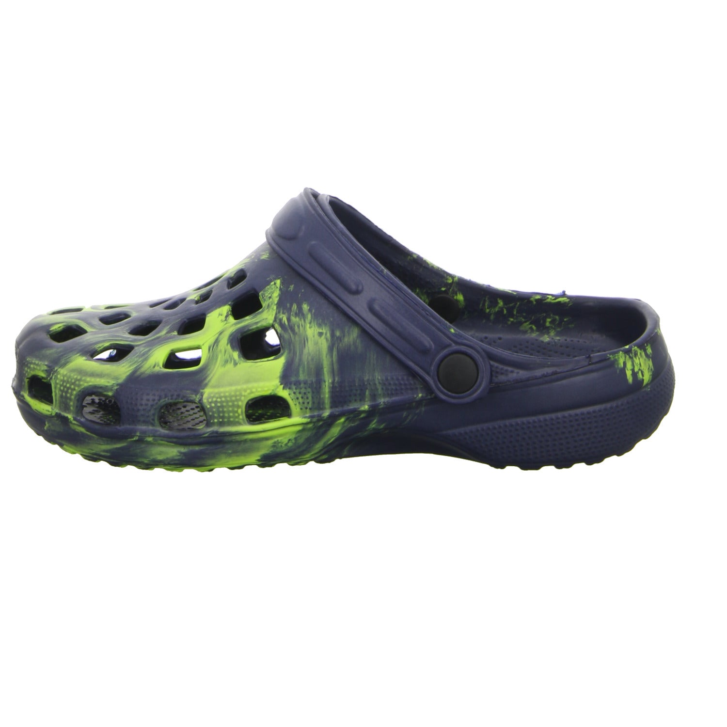 Der gesamte Schuh ist aus blau/grünem Synthetik hergestellt.